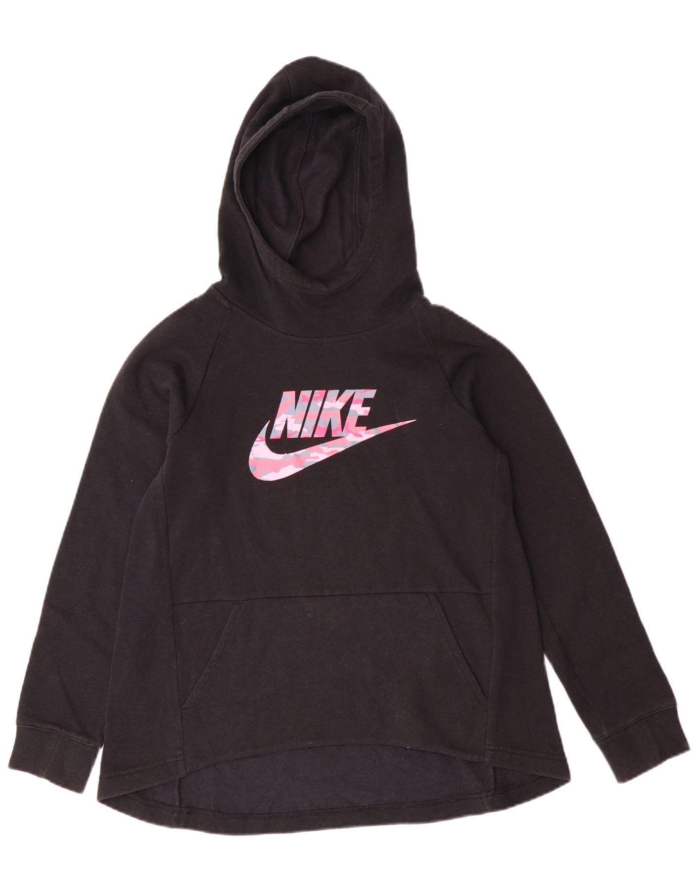 NIKE Girls Graphic Hoodie Jumper 10-11 ετών μεσαίο μαύρο βαμβακερό