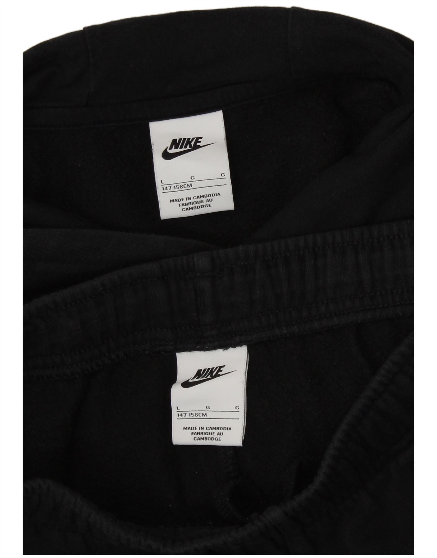 - Περιγραφή AI: Αυτή η φόρμα για κορίτσια Nike είναι κατασκευασμένη από απαλό μαύρο φλις. Το μπλουζάκι με κουκούλα διαθέτει στρογγυλή λαιμόκοψη, μακριά μανίκια και πουλόβερ που κλείνει. Το κανονικό παντελόνι έχει ελαστική μέση και τσέπες. Οι ριγέ λεπτομέρειες και η έμφαση στο λογότυπο προσθέτουν σπορ στυλ. Κατασκευασμένο στην Καμπότζη, αυτό το σετ είναι ιδανικό για αθλήματα.