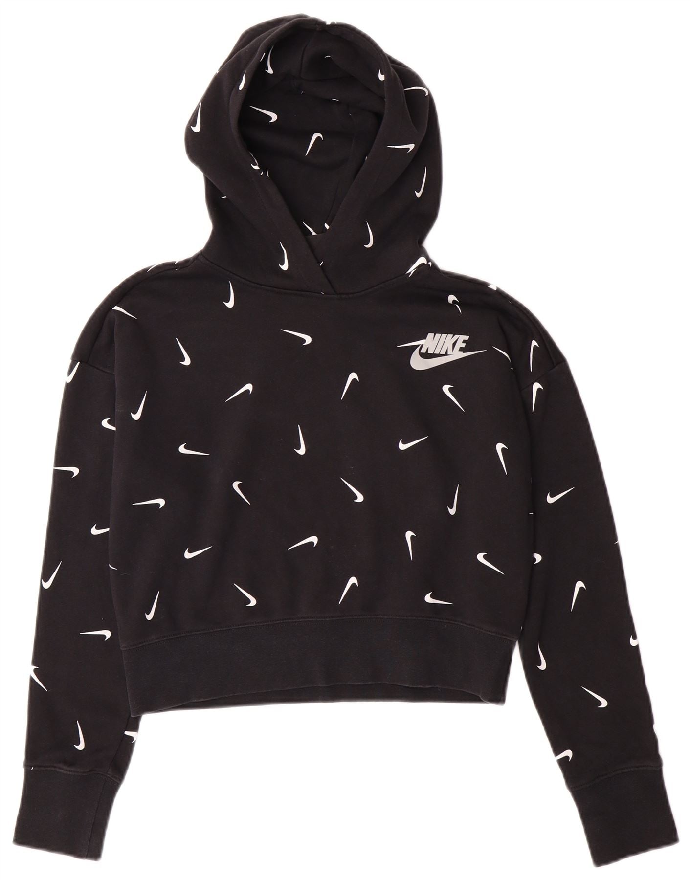 NIKE Girls Standard Crop Graphic Hoodie Jumper 12-13 Years Large Black