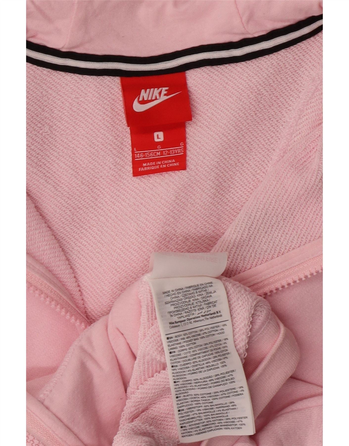 NIKE Girls Zip Hoodie πουλόβερ 12-13 ετών μεγάλο ροζ βαμβακερό