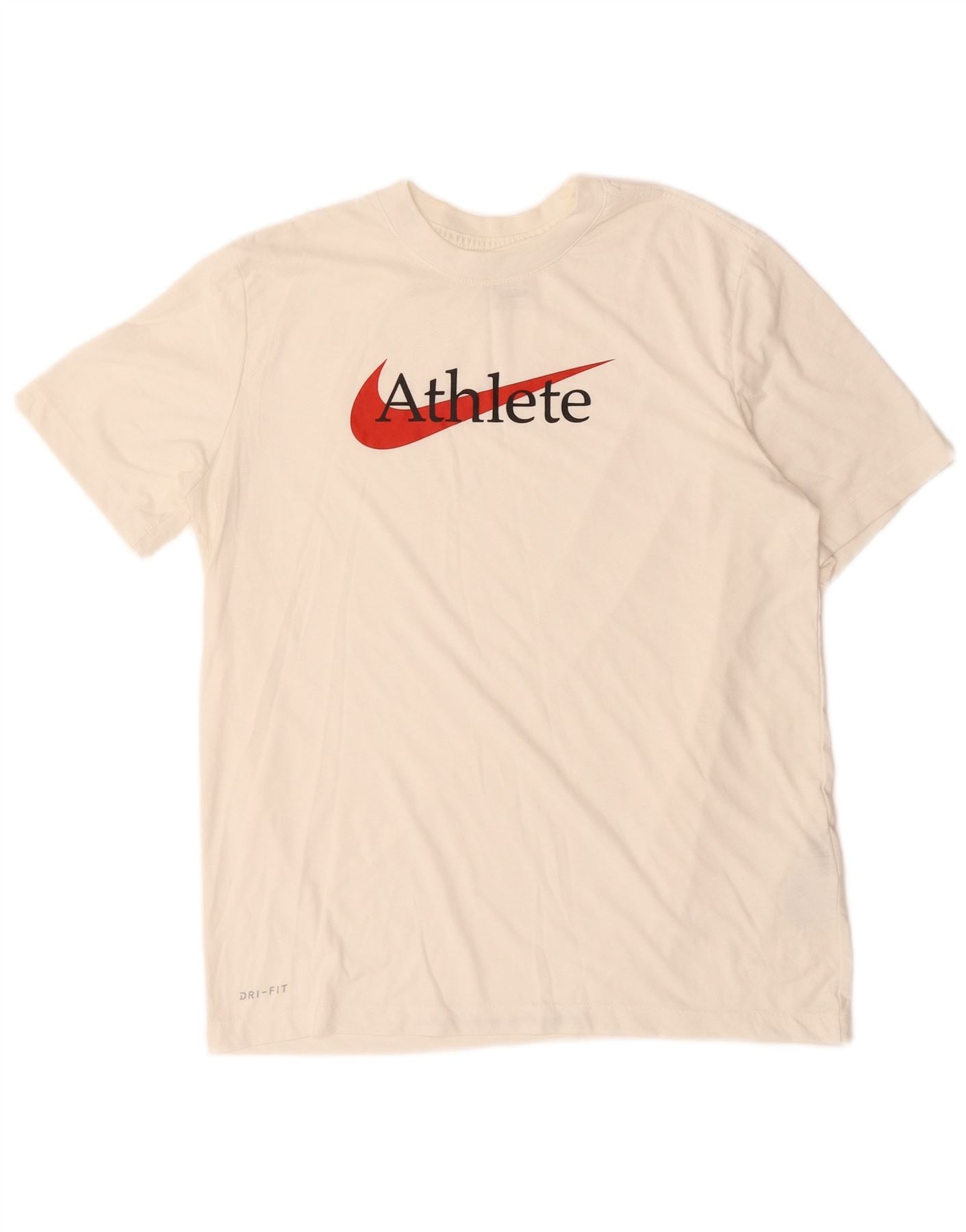 Ανδρικό γραφικό μπλουζάκι NIKE Dri Fit, μεσαίο λευκό βαμβακερό