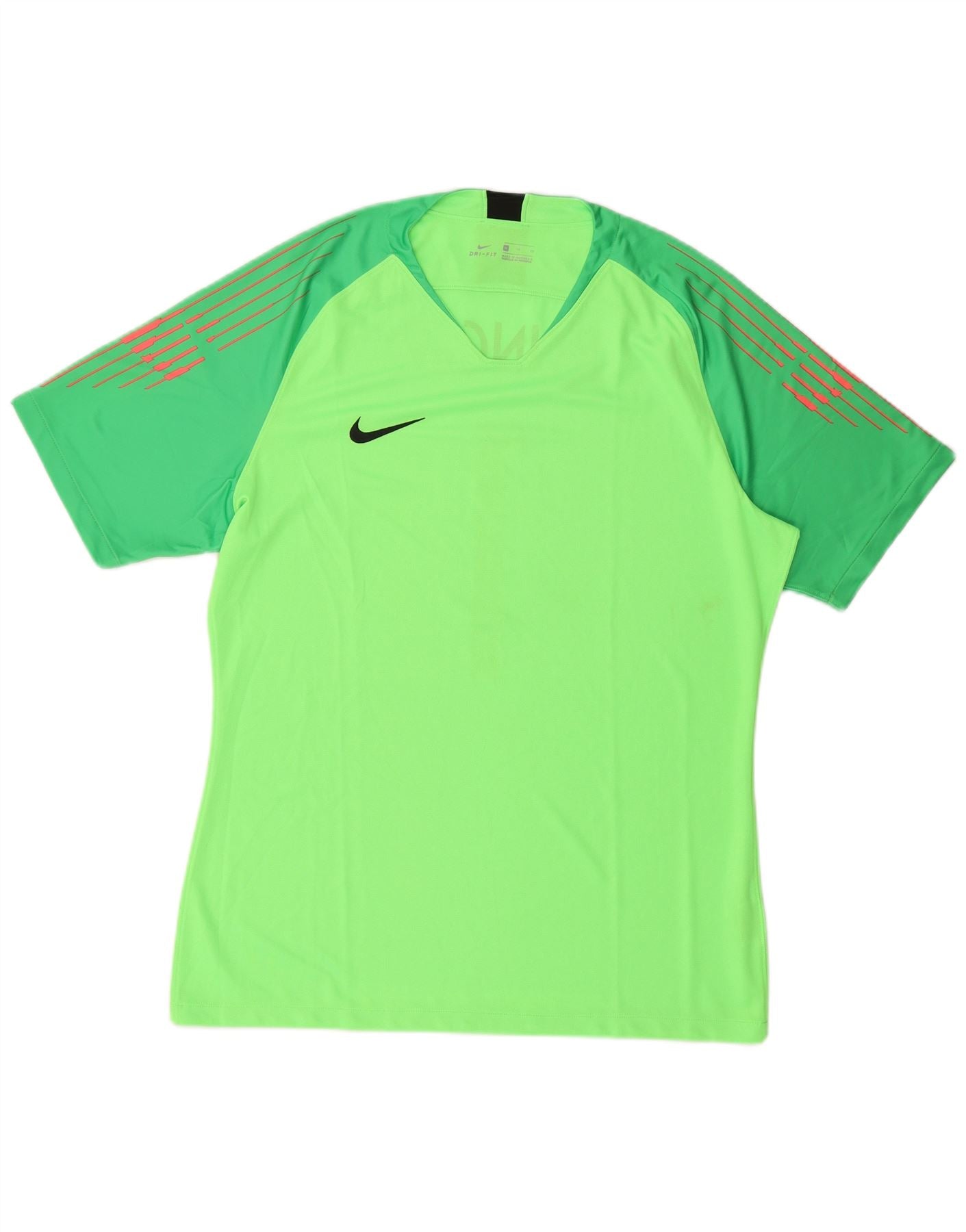 NIKE Mens Dri Fit Graphic T-Shirt Top XL Green Colourblock Polyester