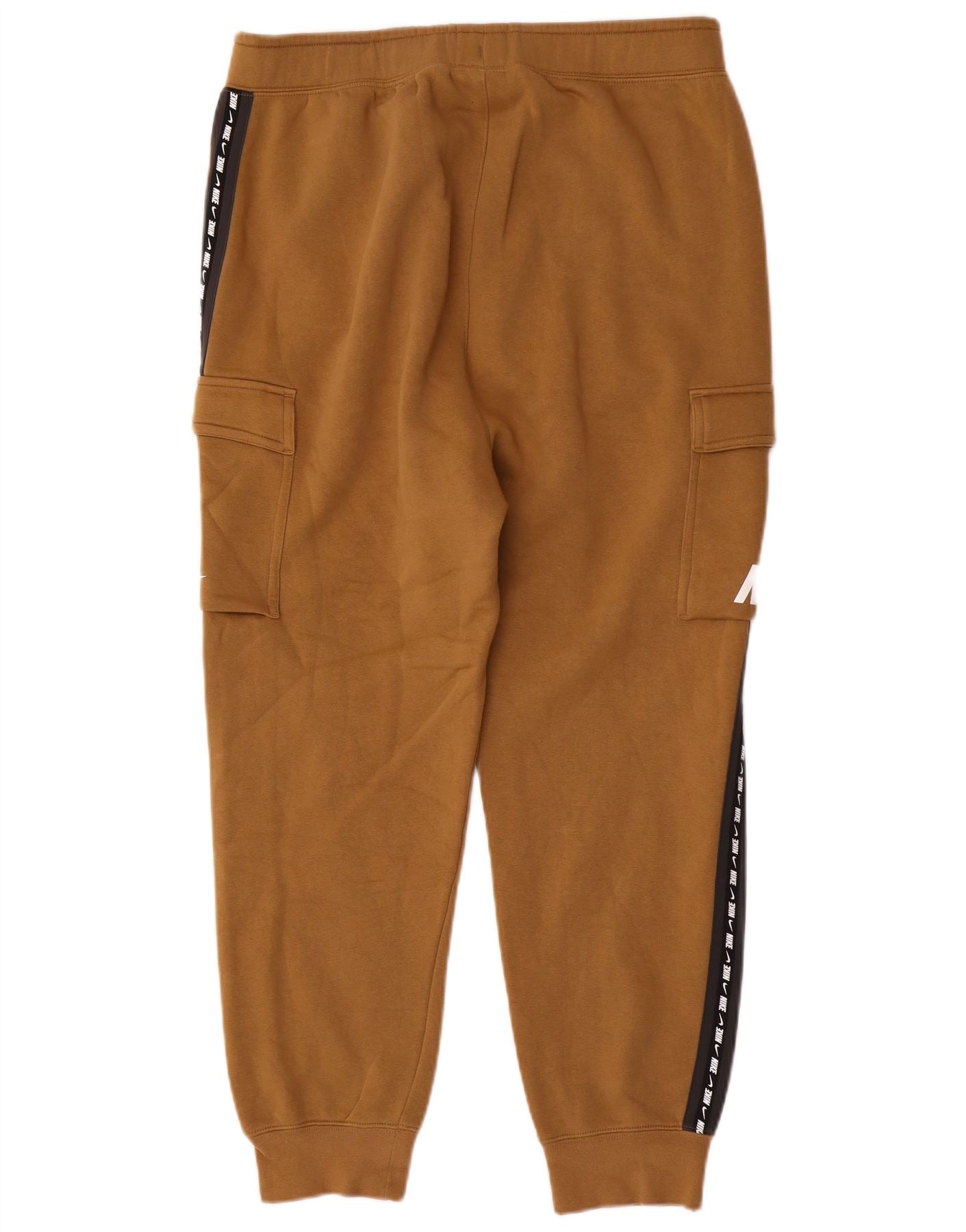 - AI Description: These Nike mens tracksuit trousers joggers are crafted from a soft brown cotton blend fleece. They feature a relaxed fit with an elasticated pull-on waist and cuffed ankles. Practical pockets offer convenience. A subtle logo accent completes the sporty design. Ideal for active wear or casual comfort.