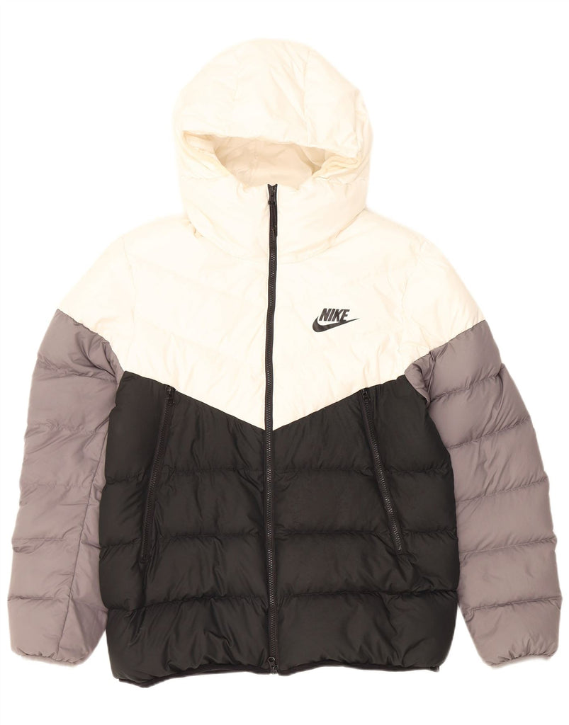 NIKE Mens Hooded Padded Jacket UK 40 Large Black Colourblock Polyester