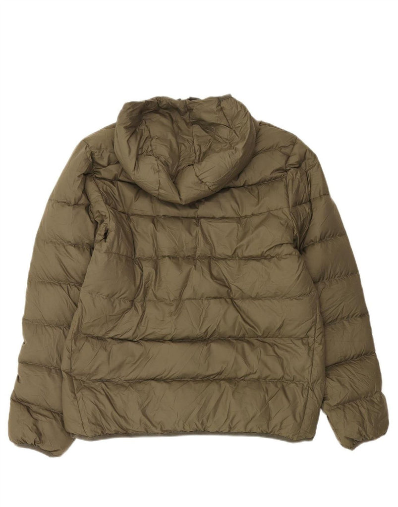 - AI Description: This Nike men's padded jacket comes in a versatile khaki polyester, providing excellent thermal warmth. The woven fabric offers a smooth, quilted texture for superior insulation. It features a full zip closure extending to a functional hooded design. Long sleeves and zipped pockets enhance practicality. A regular fit ensures comfortable wear, subtly finished with a brand logo.