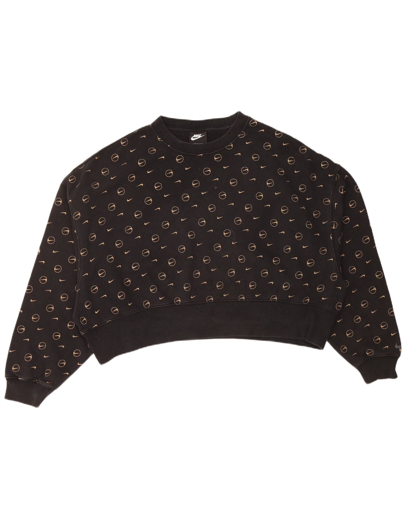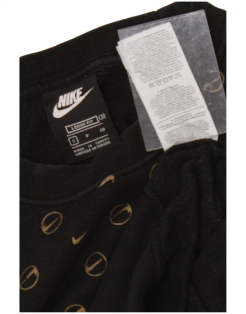 NIKE Womens Crop Graphic Loose Fit Sweatshirt Jumper UK 10 Small Black