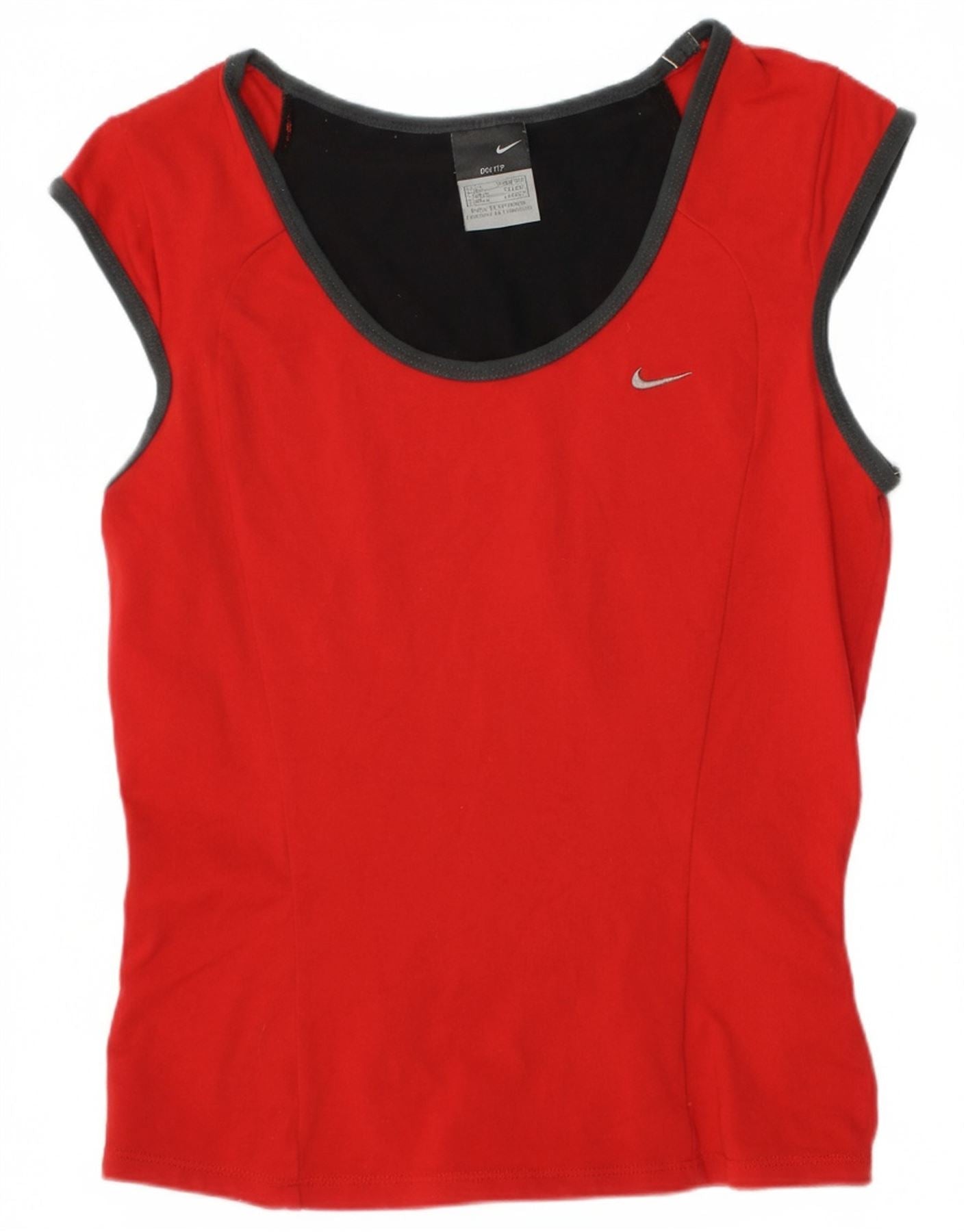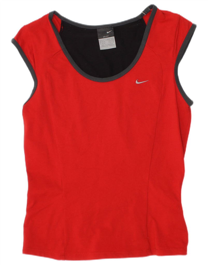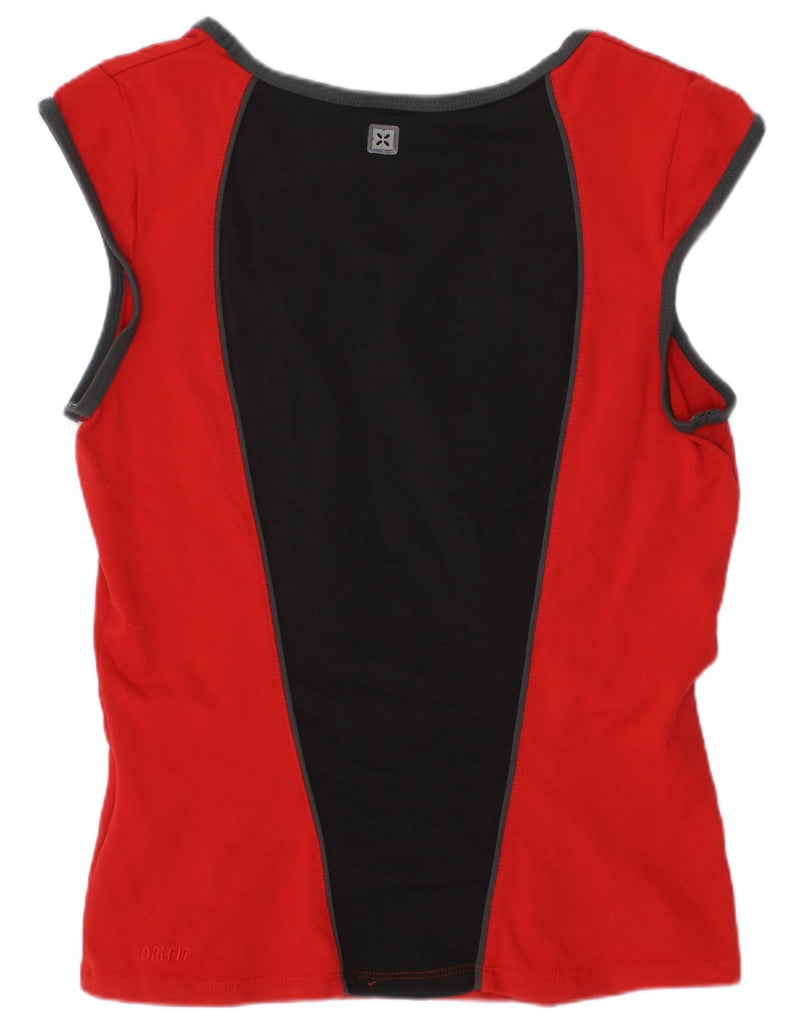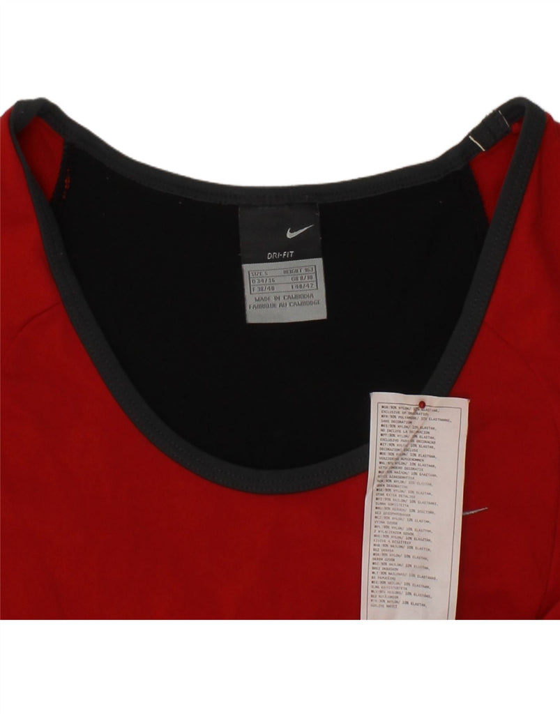 NIKE Womens Dri Fit Crop T-Shirt Top UK 8/10 Small Red Colourblock Nylon