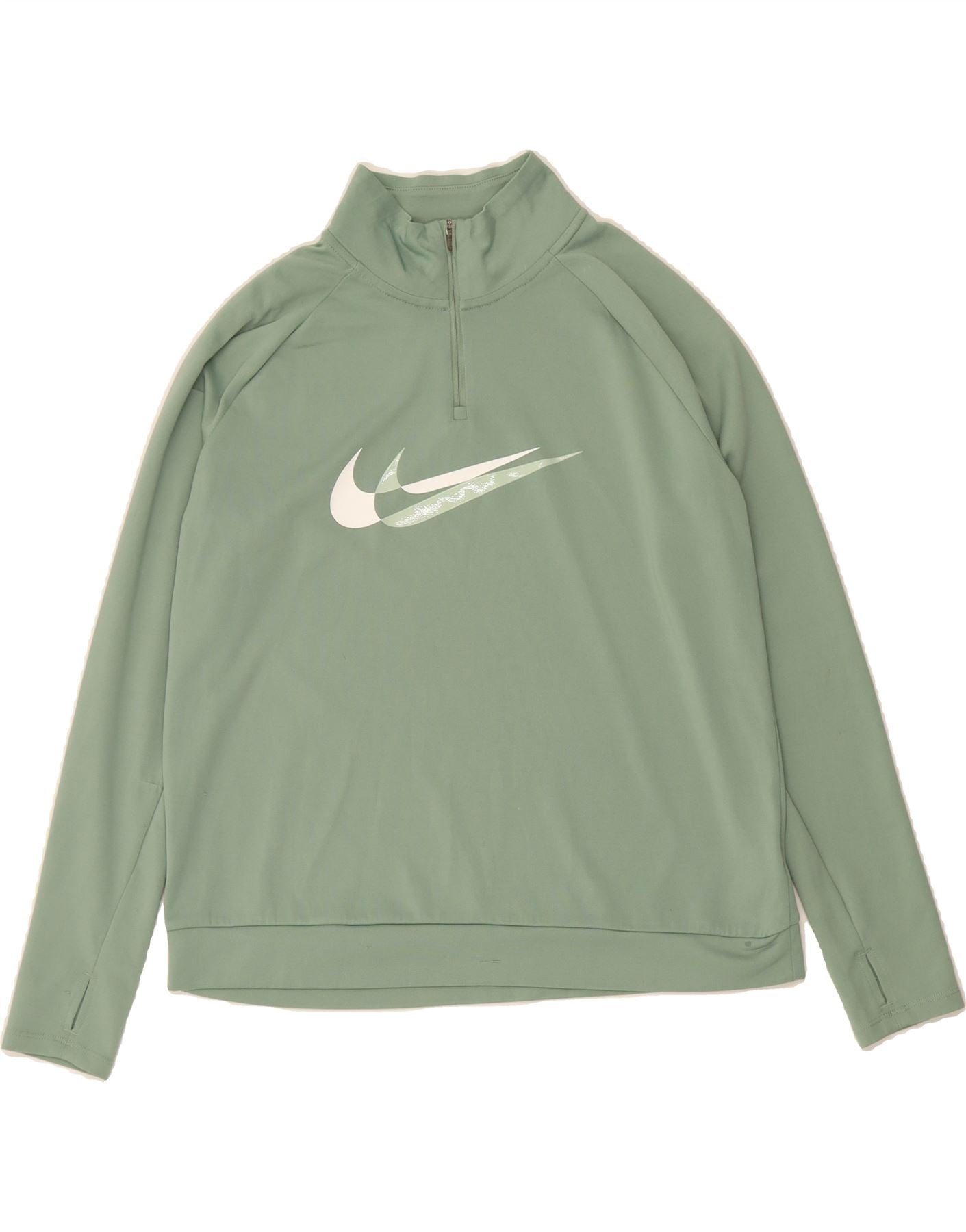 NIKE Womens Dri Fit Graphic Pullover Tracksuit Top UK 14 Medium Green