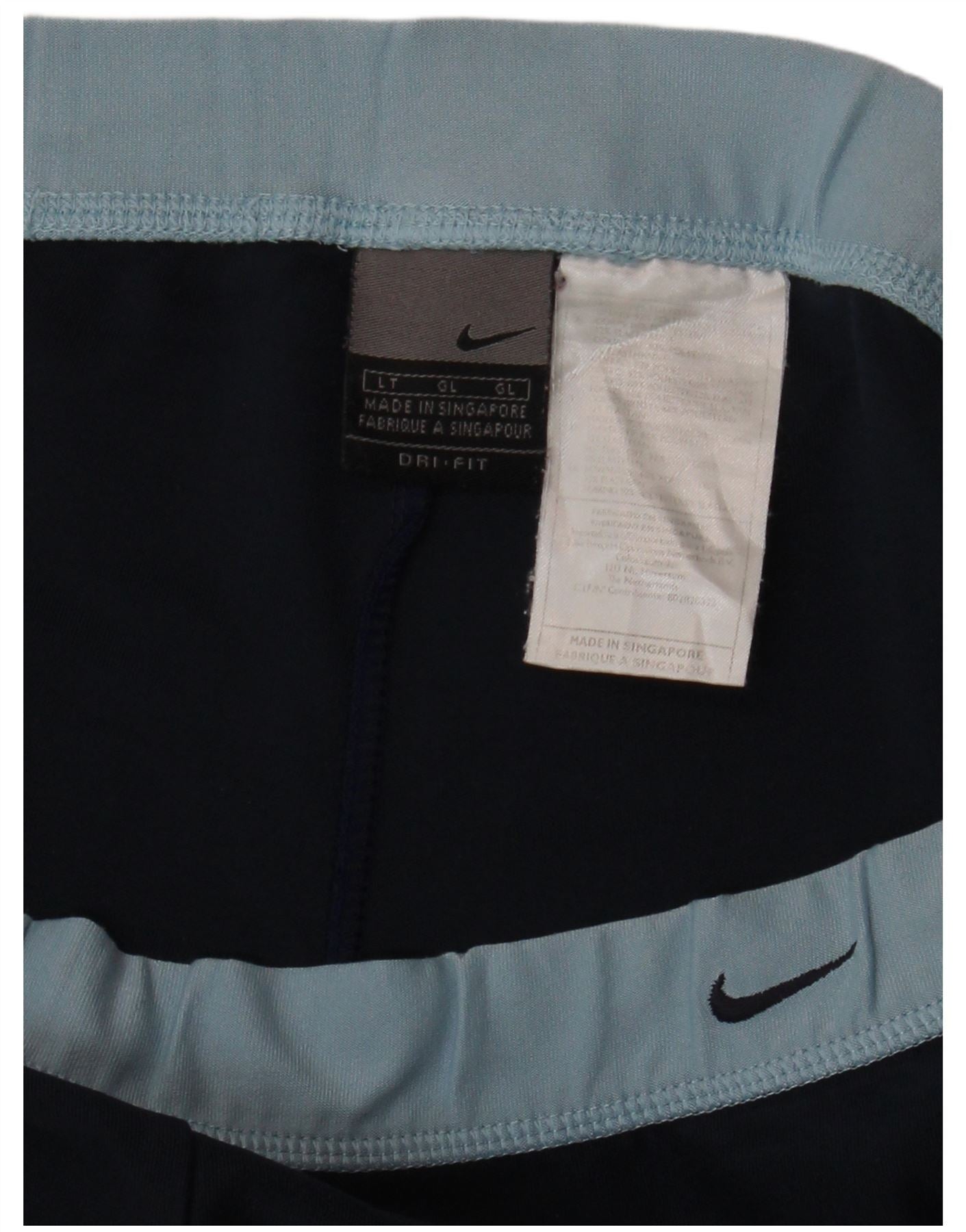 NIKE Womens Dri Fit Tracksuit Trousers UK 16 Large Navy Blue Colourblock