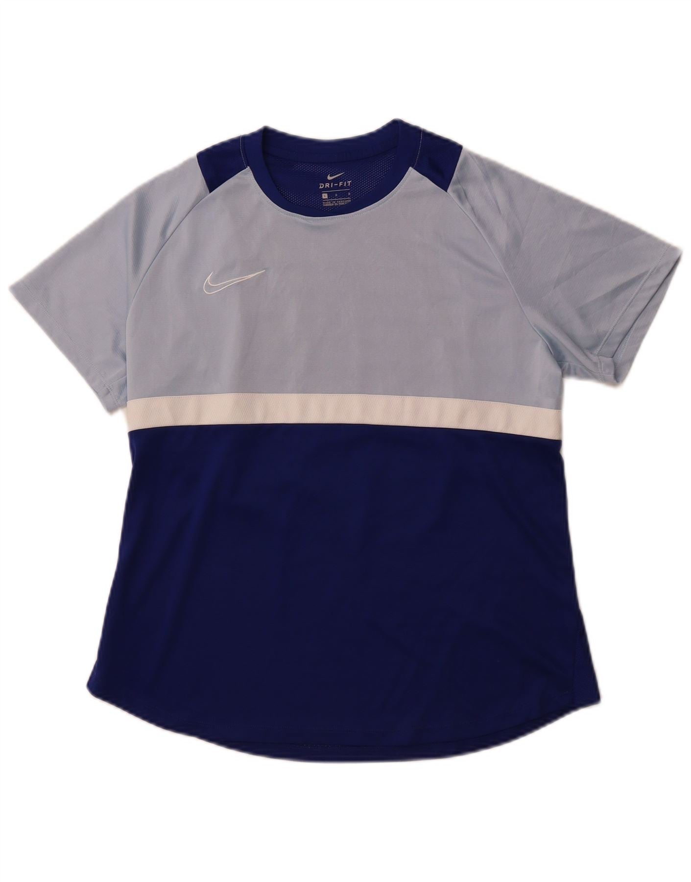 NIKE Womens Grant Fit Graphic T-Shirt Top UK 14 Large Blue Colourblock