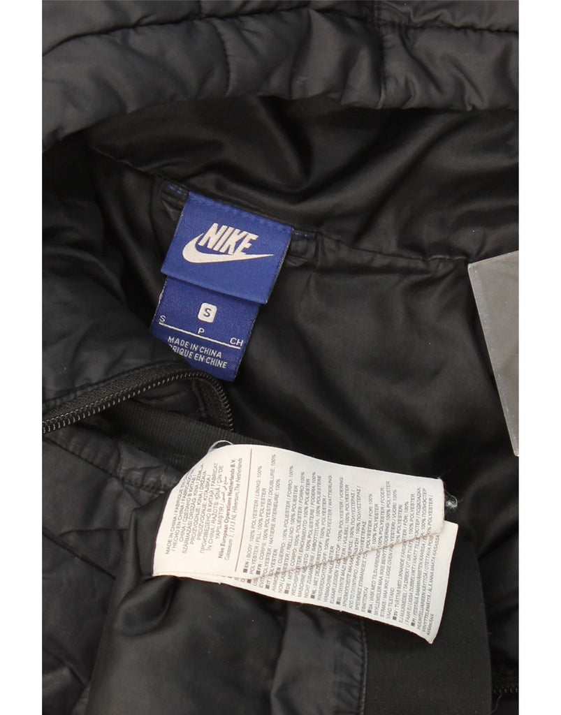 NIKE Womens Graphic Hooded Padded Jacket UK 10 Small Black Polyester