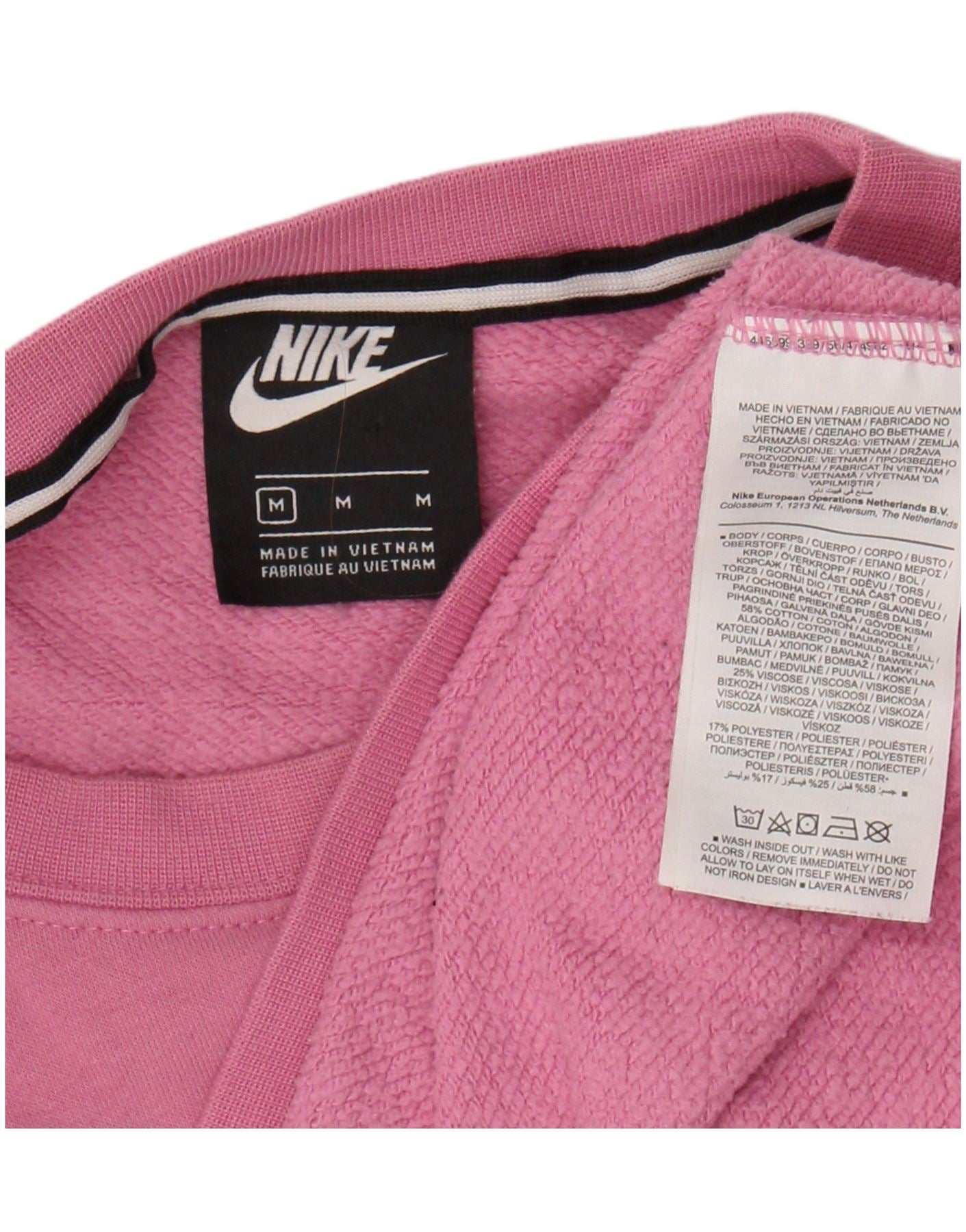 - AI Description: This Nike womens sweatshirt jumper is crafted from a soft pink blended fabric, featuring a comfortable jersey texture. The body combines 80 percent cotton with 20 percent polyester for a gentle feel. It features a classic round neck and long sleeves. The regular fit offers a comfortable yet flattering silhouette. A distinctive graphic logo provides a stylish accent. Its pullover design ensures ease of wear. This breathable garment also offers comfort and stretch for everyday activity.