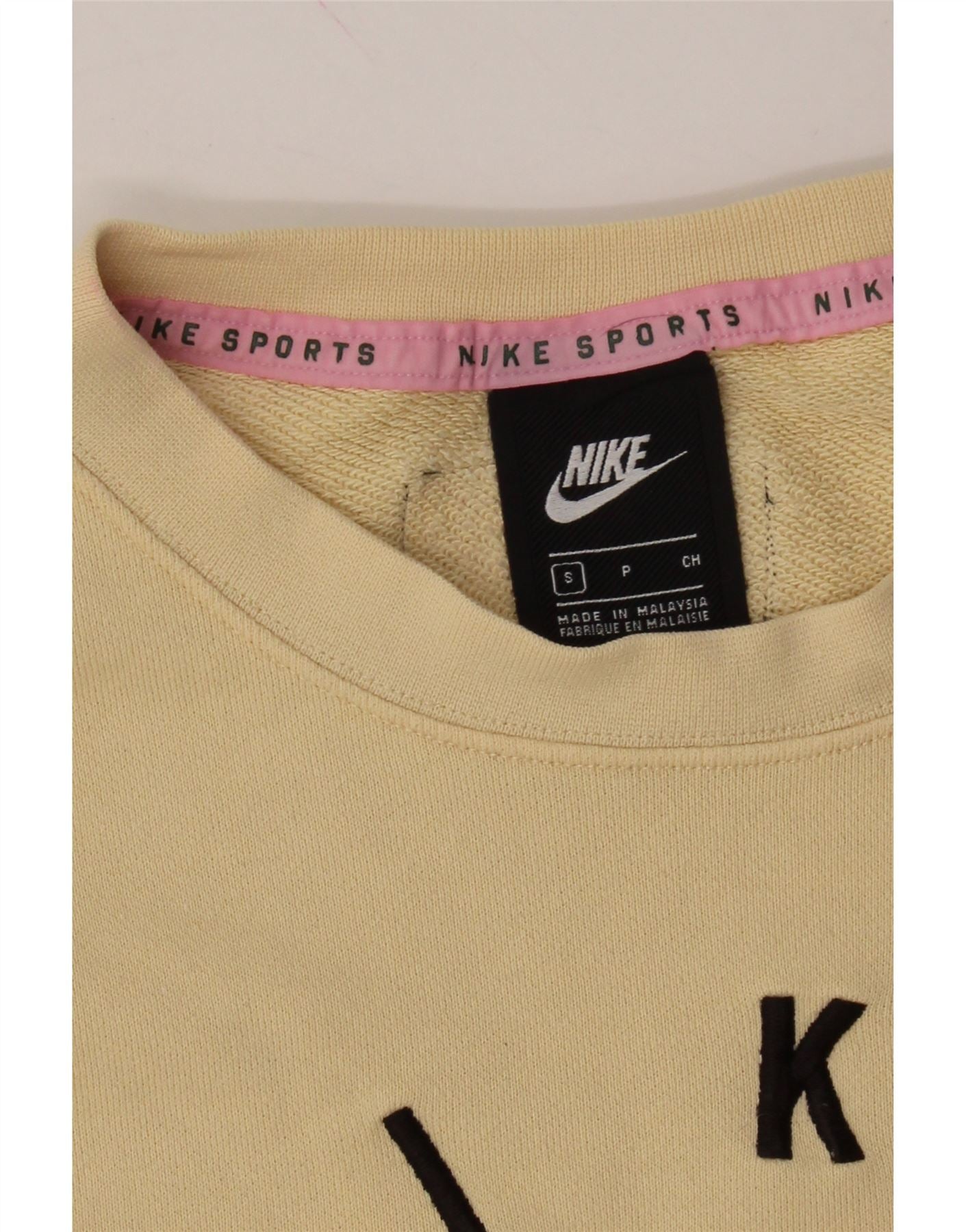 NIKE Womens Oversized Graphic Sweatshirt Jumper UK 10 Small Beige Cotton