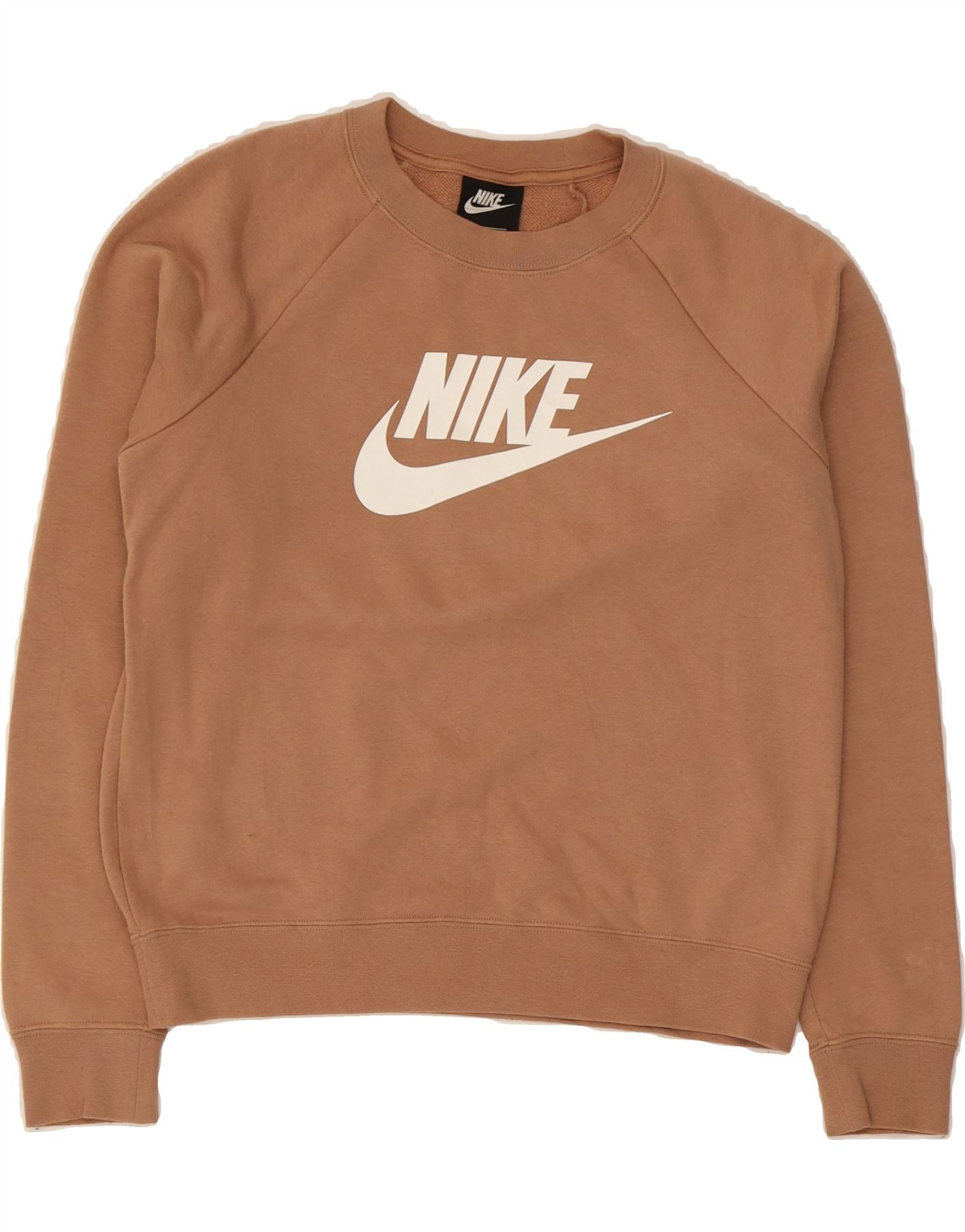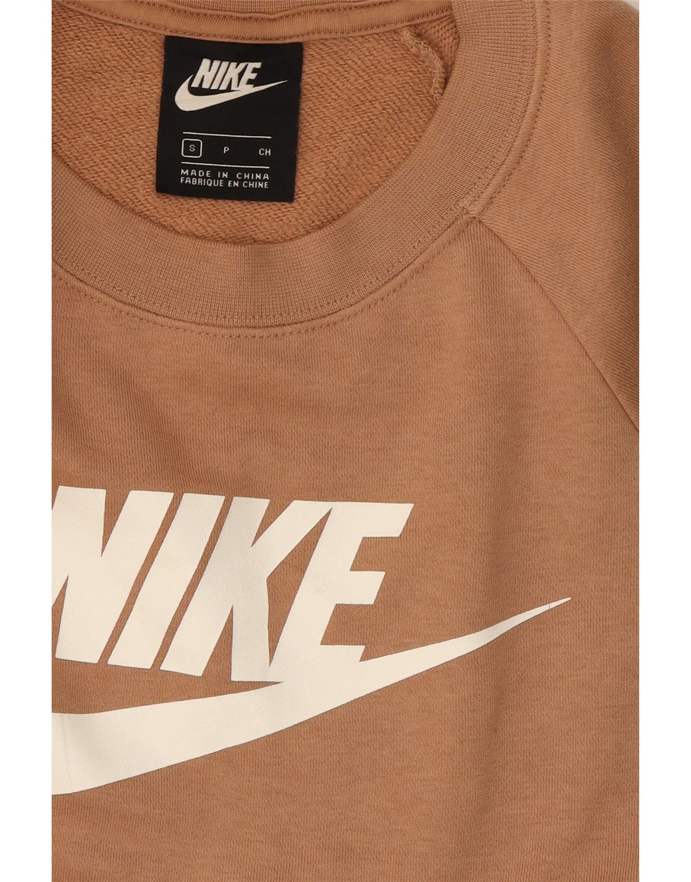 NIKE Womens Oversized Graphic Sweatshirt Jumper UK 10 Small Beige Cotton