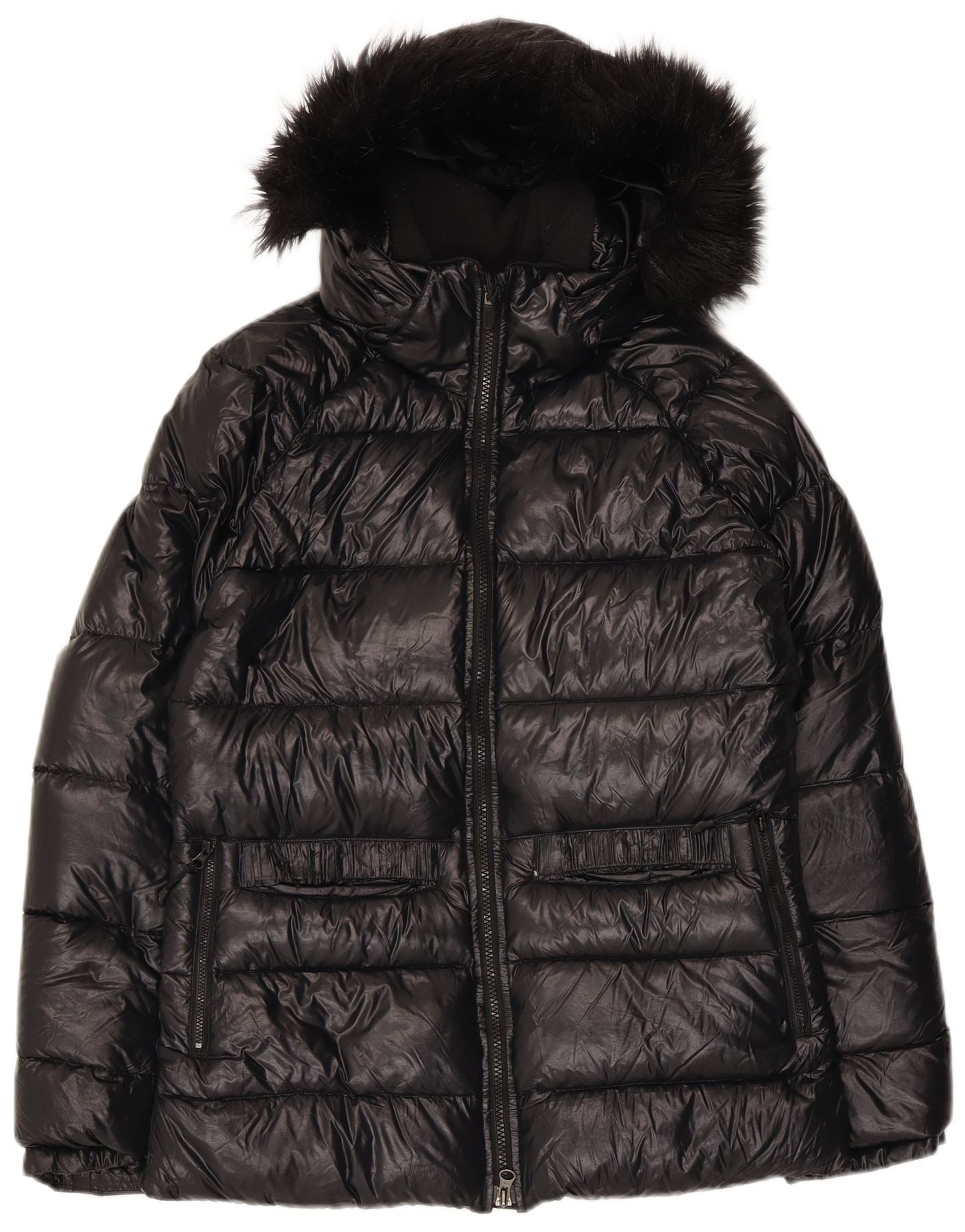 Γυναικείο μπουφάν NIKE με κουκούλα μεγάλου μεγέθους UK 6/8 XS μαύρο νάιλον