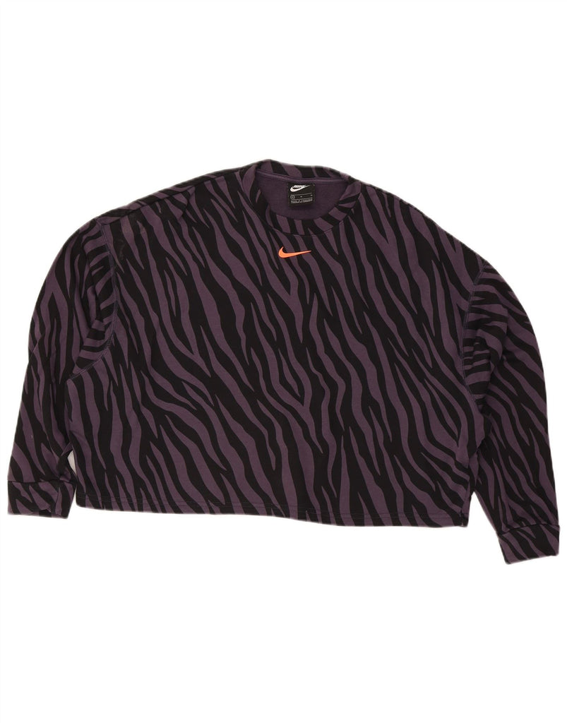 NIKE Womens Oversized Sweatshirt Jumper UK 14 Medium Grey Animal Print