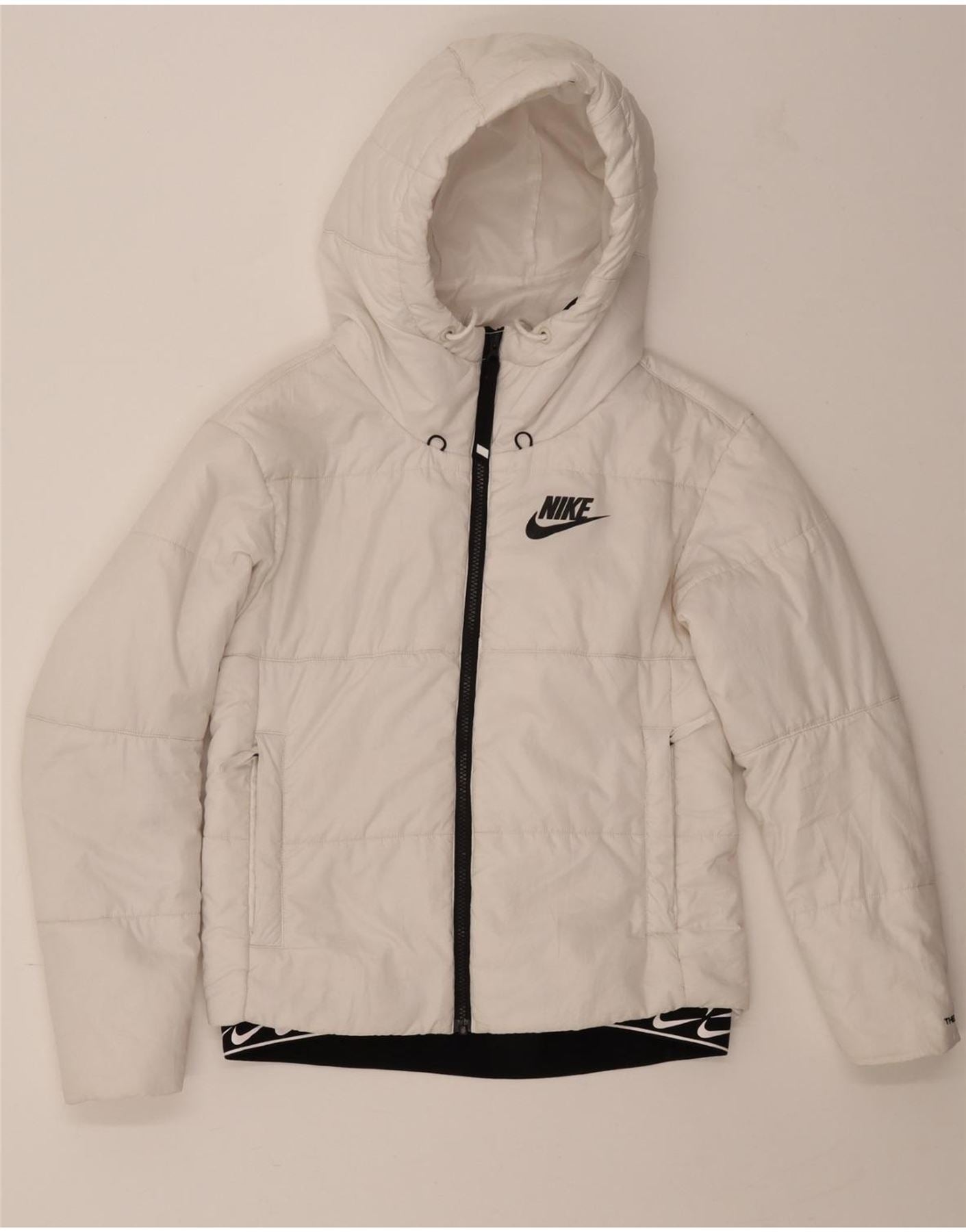 NIKE Womens Therma-Fit Hooded Padded Jacket UK 6 XS White Polyester