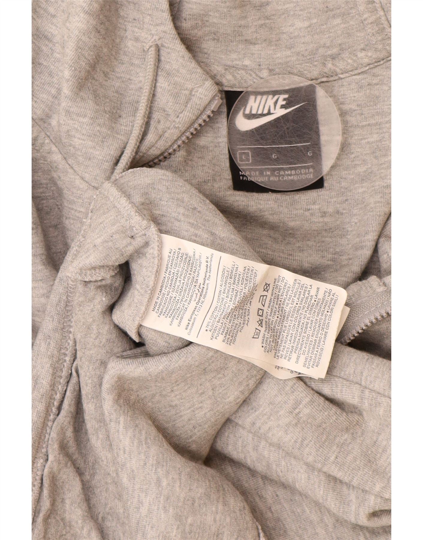 NIKE Womens Zip Hoodie Sweater UK 16 Large Grey Cotton