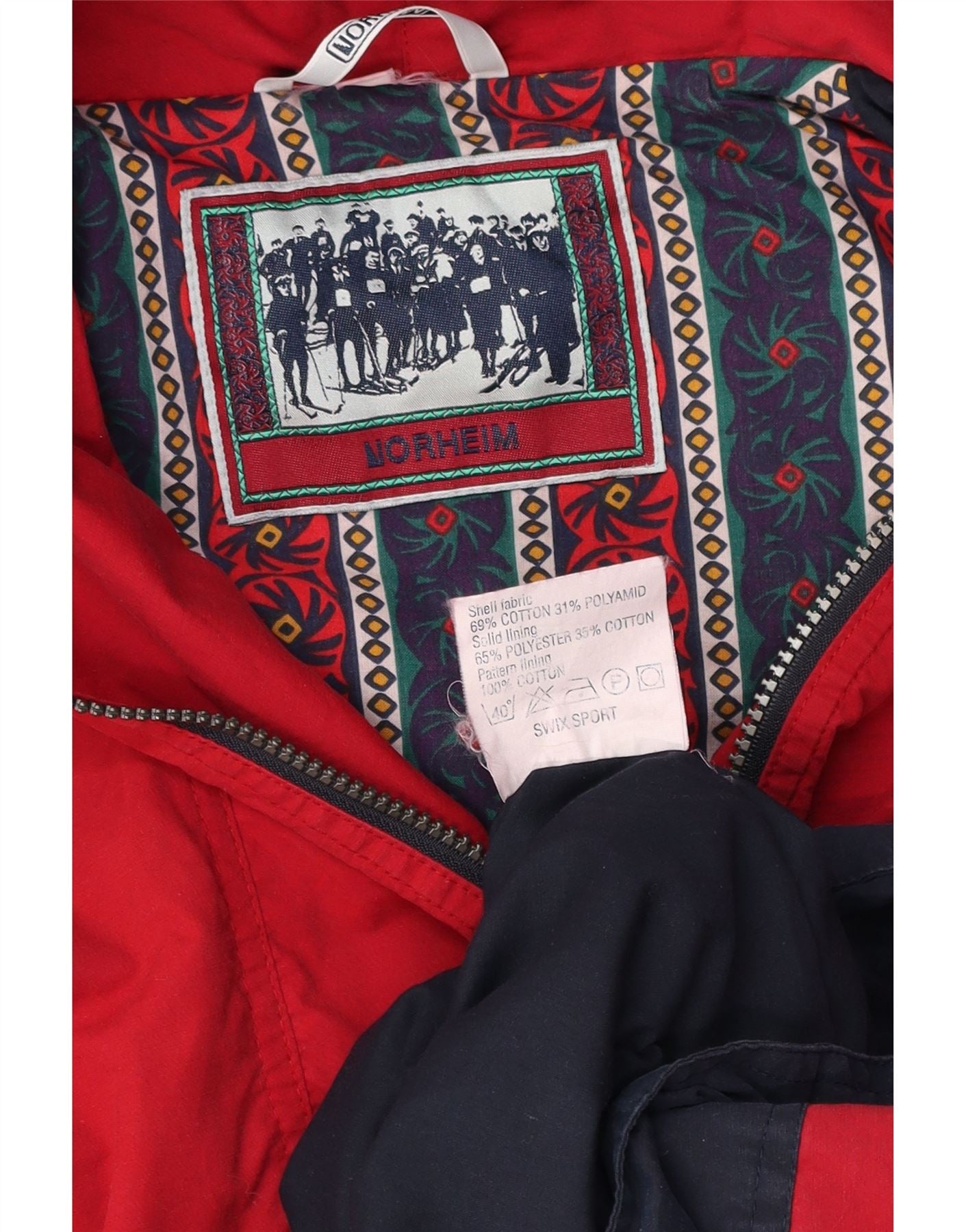 NORHEIM Ανδρικό μπουφάν Anorak με κουκούλα UK 40 μεγάλο κόκκινο βαμβακερό