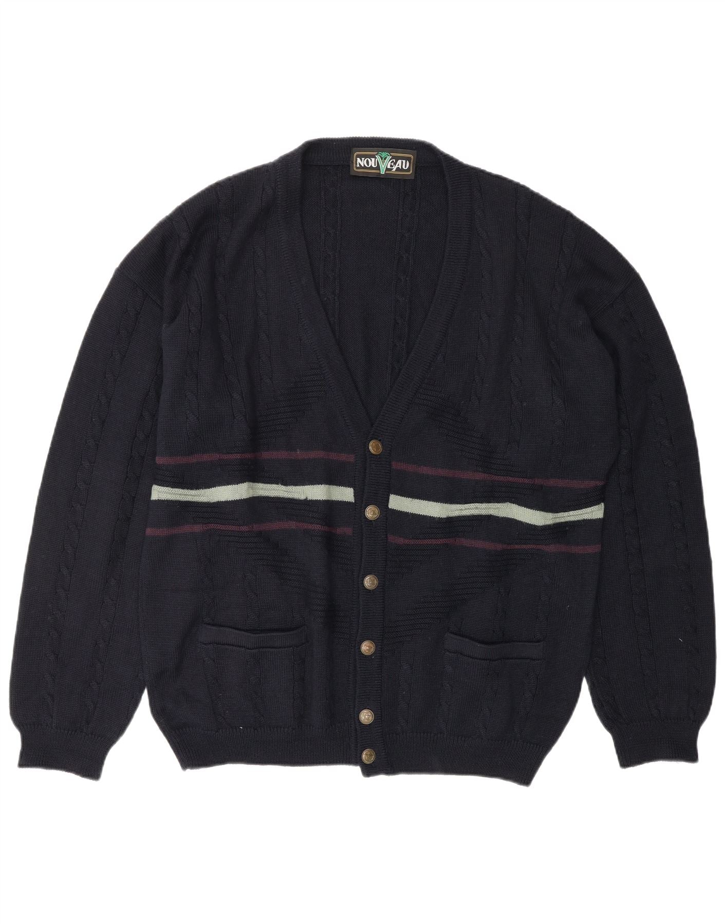 Ανδρικό πουλόβερ NOUVEAU Ζακέτα XL Μαλλί σε μπλε ριγέ
