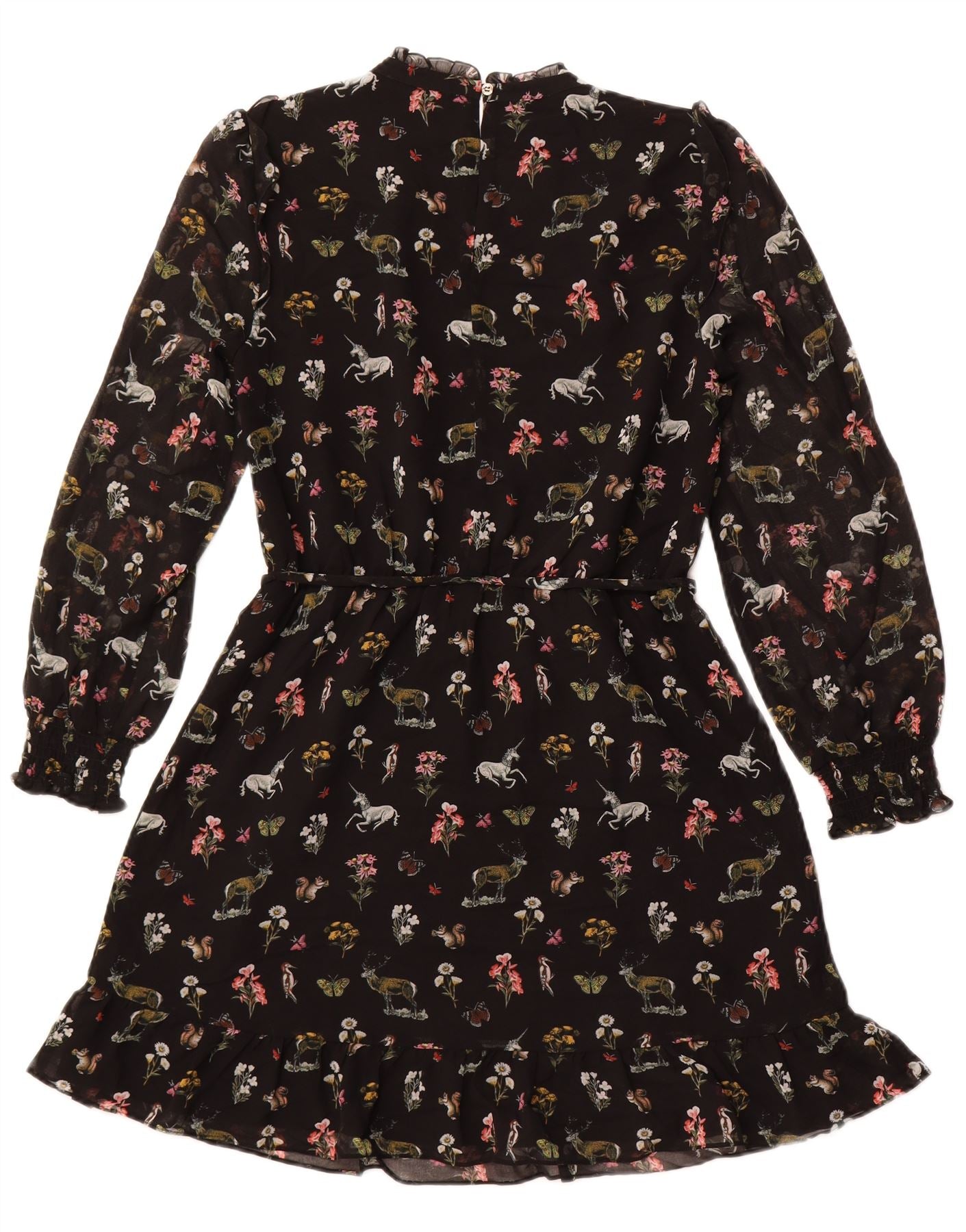 Γυναικείο μακρυμάνικο φόρεμα OASIS A-Line UK 12 Μεσαίο μαύρο φλοράλ πολυεστέρας