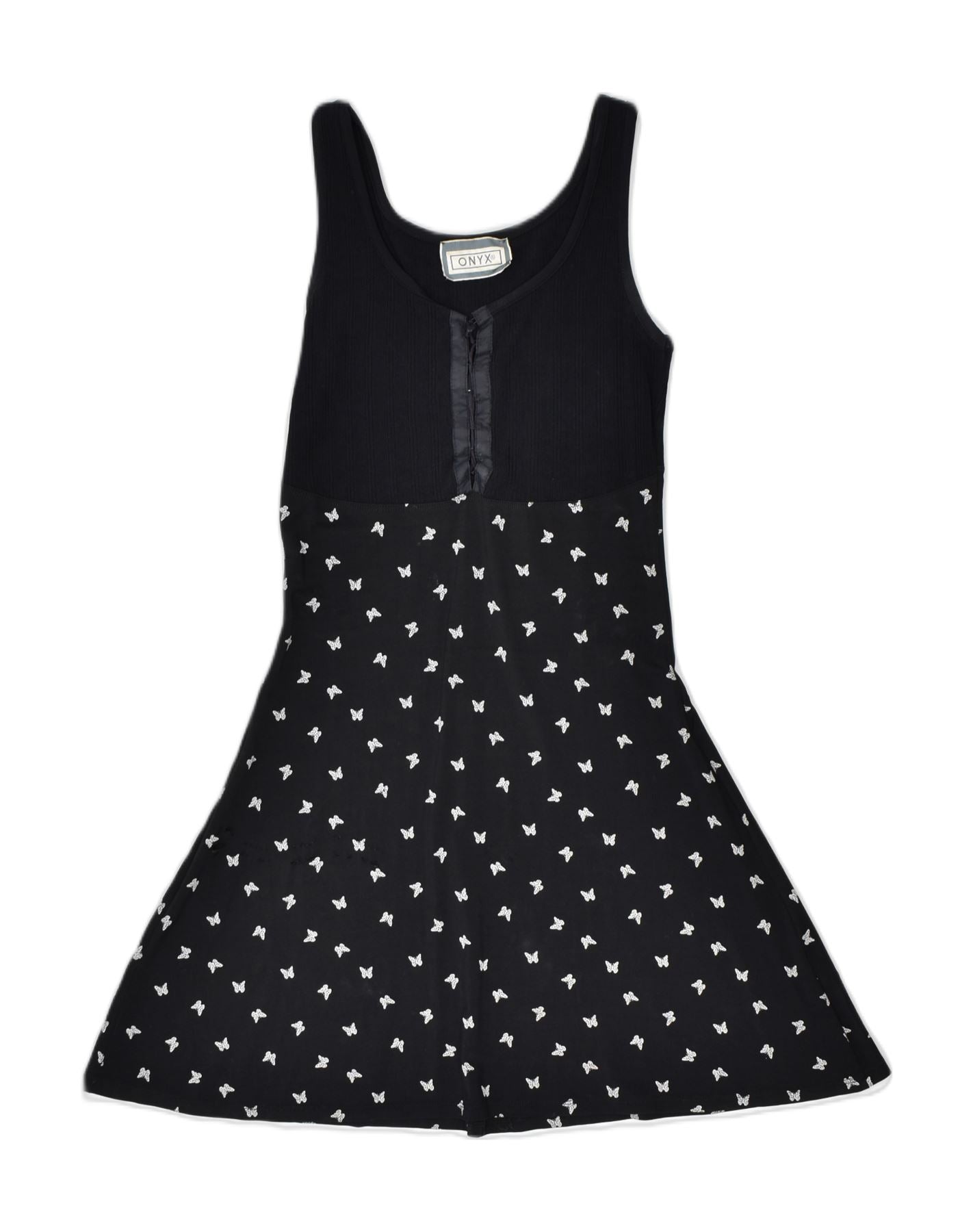 ONYX Womens A-Line Dress UK 2 2XS Black Floral Viscose | Vintage | Thrift | Second-Hand | Used Clothing | Messina Hembry