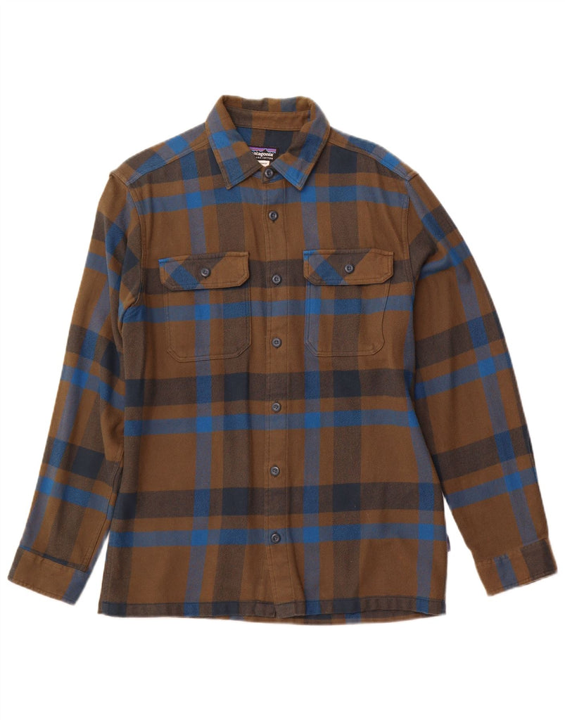 PATAGONIA Ανδρικό Φανελένιο Πουκάμισο Μικρό Καφέ Καρό Βαμβακερό