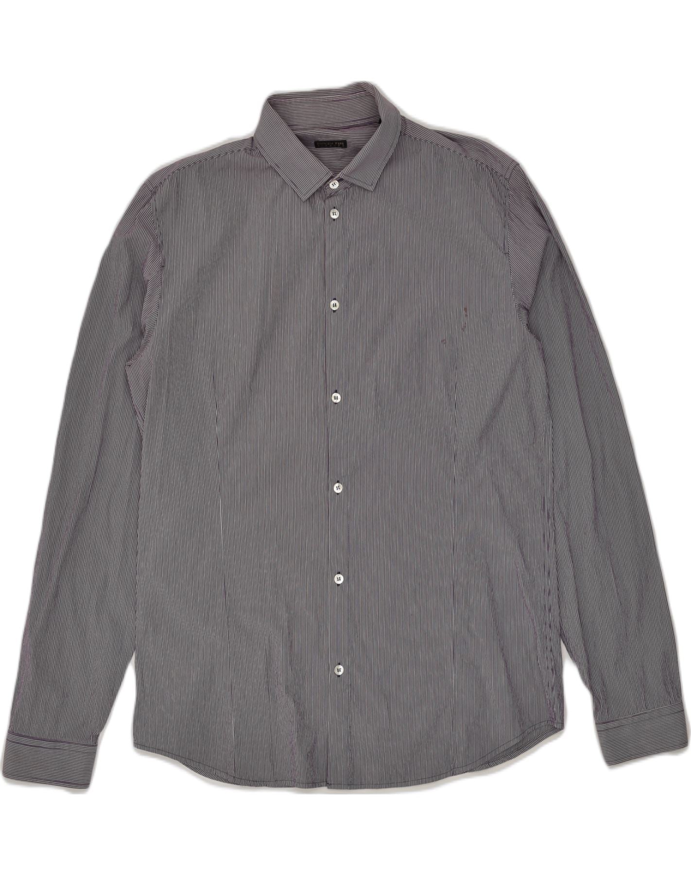 PATRIZIA PEPE FIRENZE Mens Shirt IT 52 Large Purple Striped Cotton