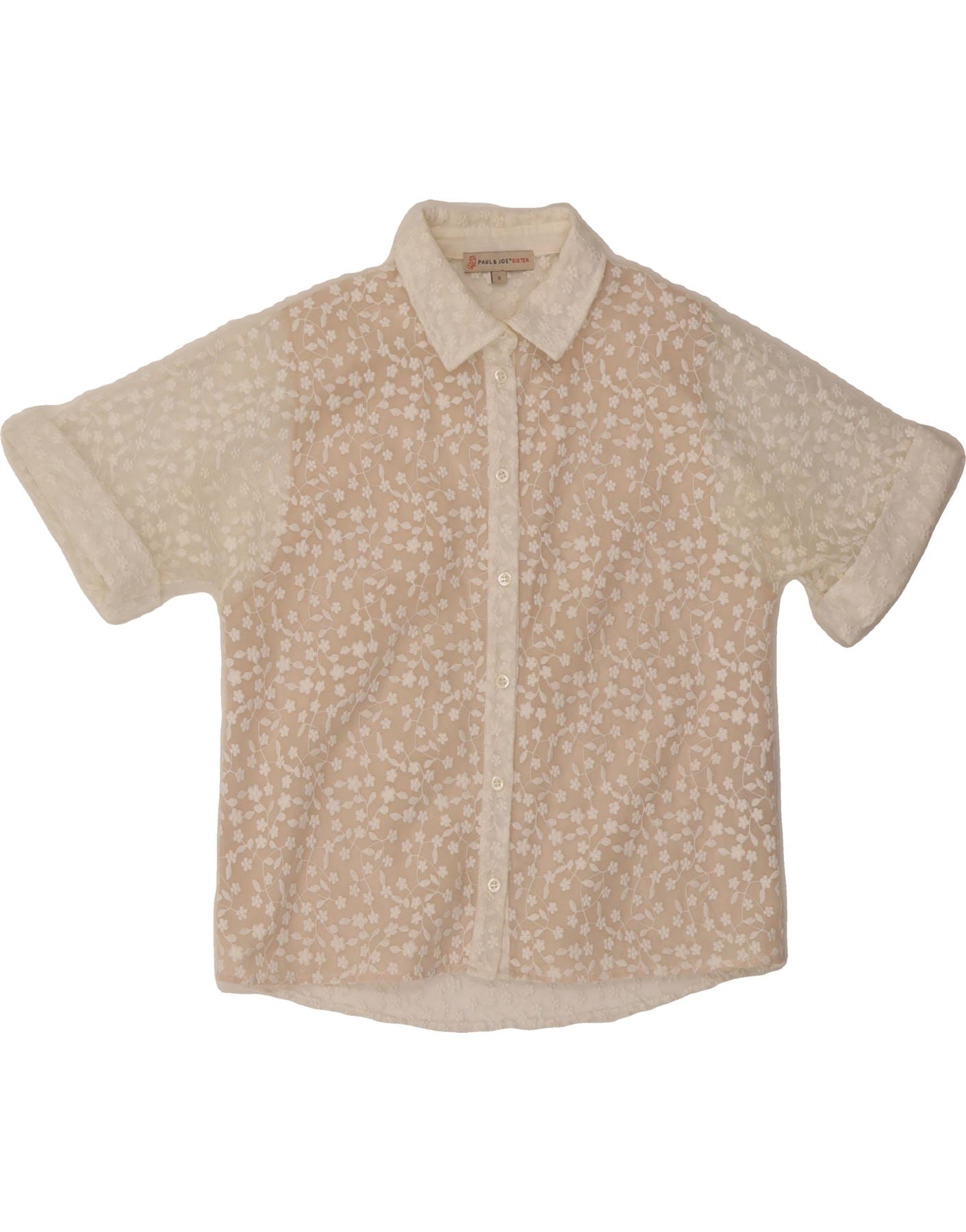 PAUL & JOE Womens See Through Lace Shirt Size 0 XS White Floral Polyester