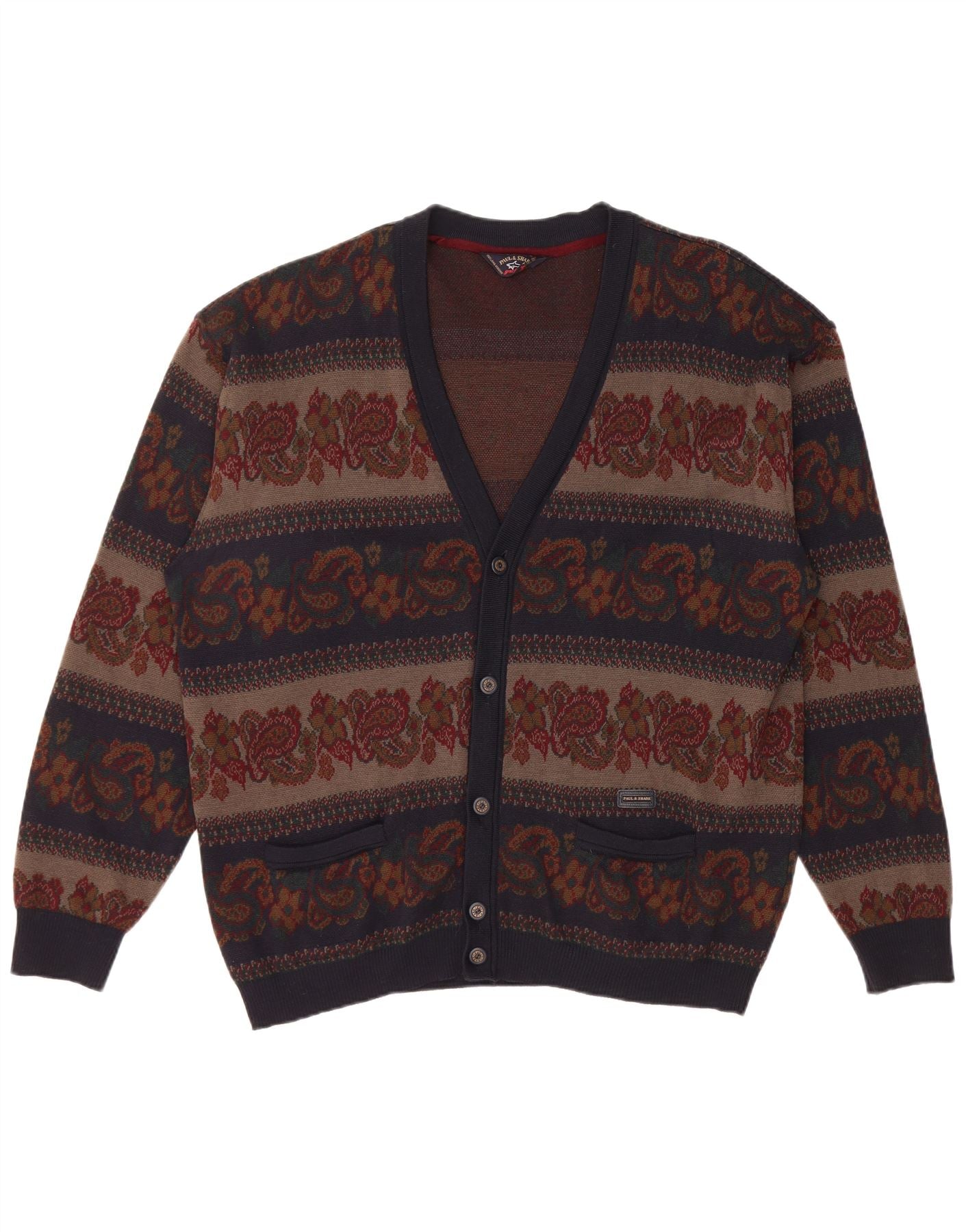 PAUL & SHARK Ανδρικό πουλόβερ ζακέτα 2XL Navy Blue Paisley New Wool