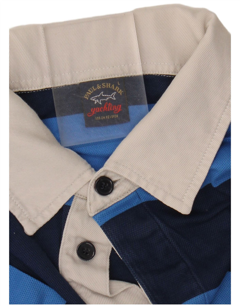 PAUL & SHARK Mens Yachting Graphic Rugby Polo Shirt Large Blue Striped