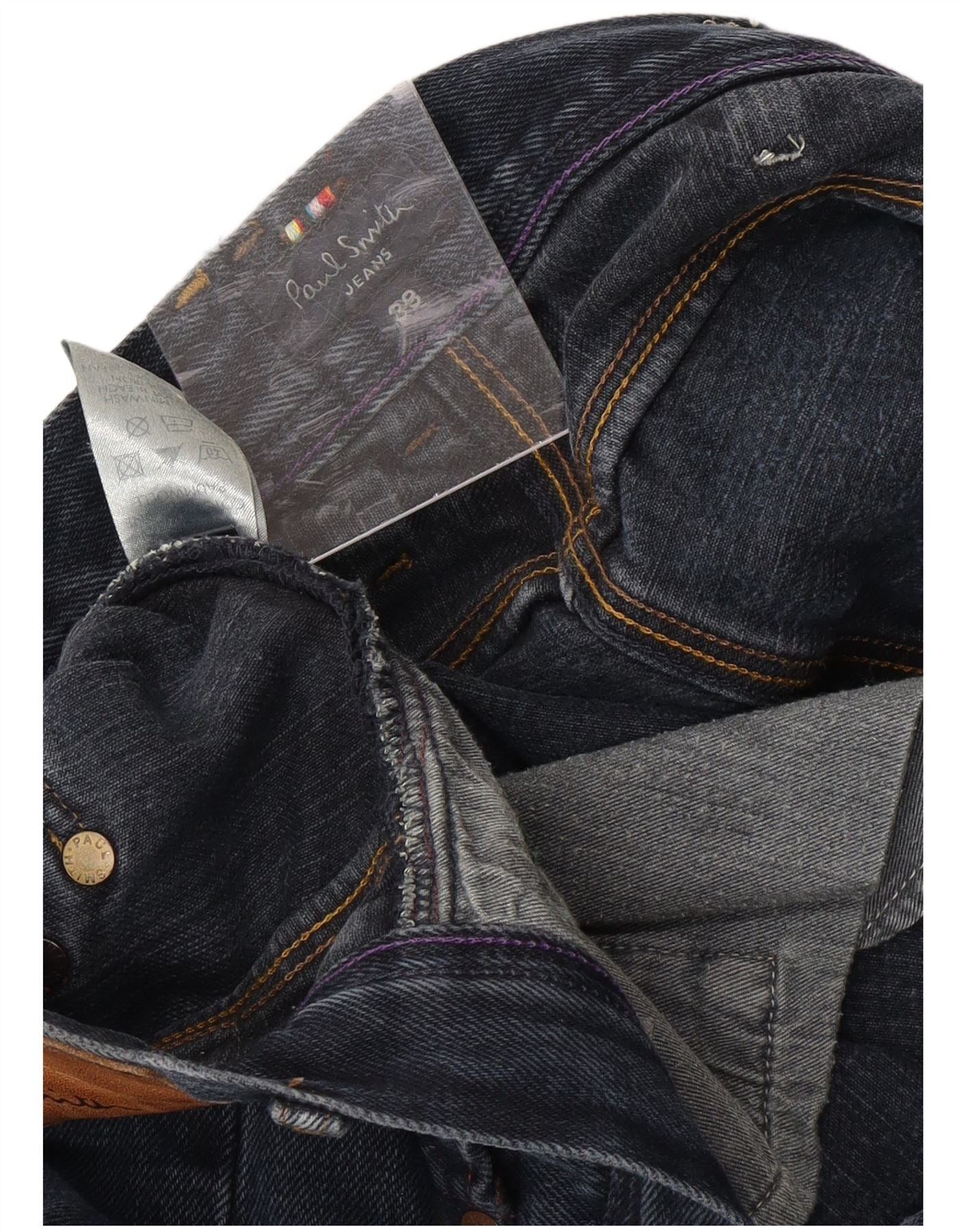 - AI Description: This Paul Smith mens straight jeans are crafted from 100 percent cotton denim in a rich navy blue. They feature a classic straight leg for a timeless silhouette. The regular fit ensures comfort and ease of movement. A button closure secures the front, complemented by practical pockets. This design offers a clean, classic style, perfect for everyday wear.
