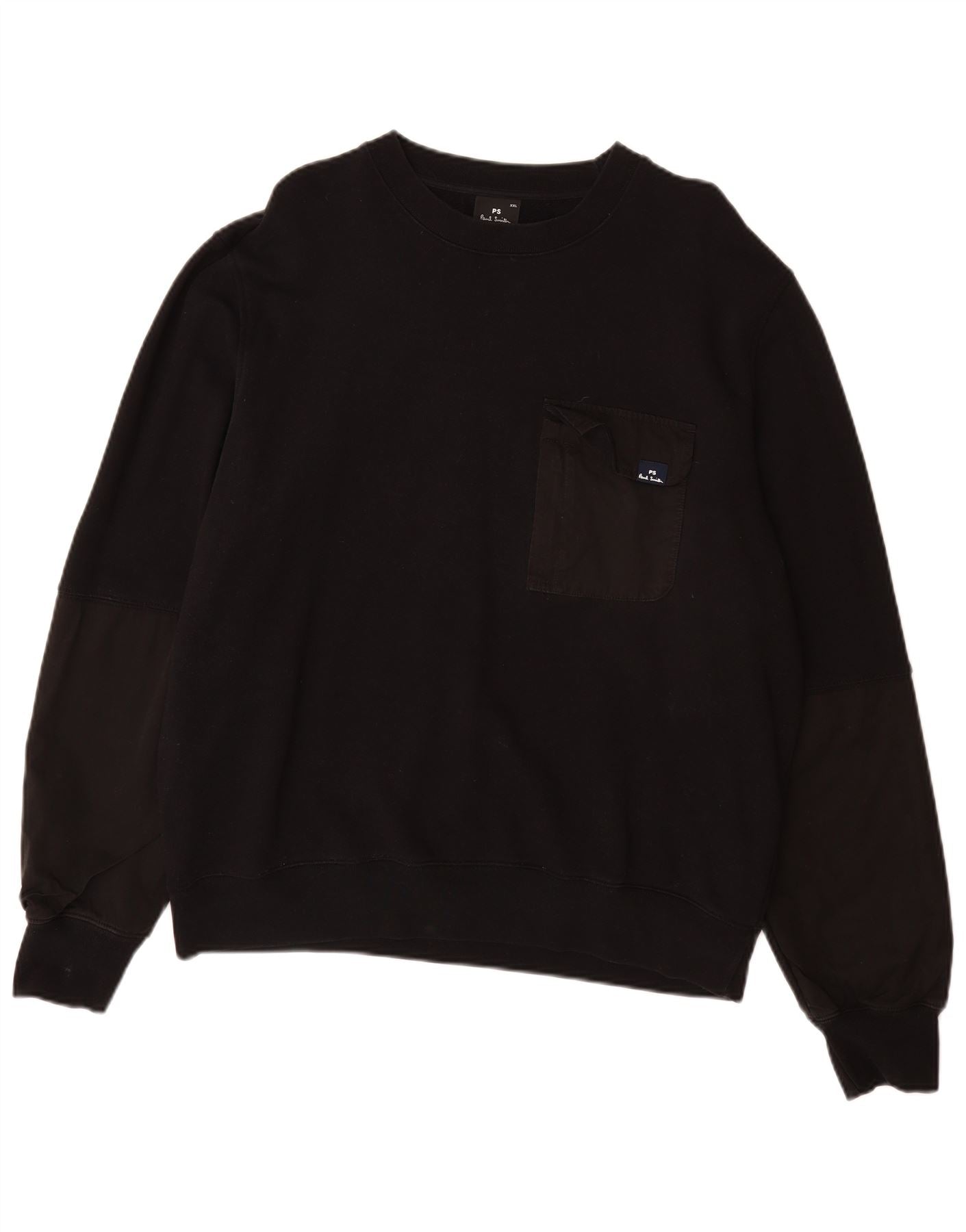- AI Description: This Paul Smith mens sweatshirt jumper is crafted from a comfortable black knit fabric. It features a classic round neck and long sleeves. The regular fit ensures comfortable wear. A subtle logo accent adds signature branding. Practical pockets are included. The pullover style offers easy dressing.