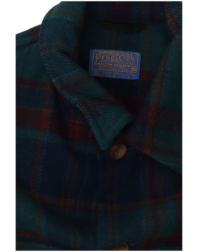 PENDLETON Mens Bomber Jacket UK 38 Medium Blue Check Virgin Wool