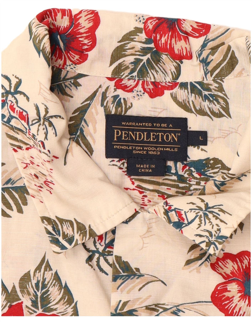PENDLETON Mens Short Sleeve Shirt Large Beige Floral Cotton Hawaiian