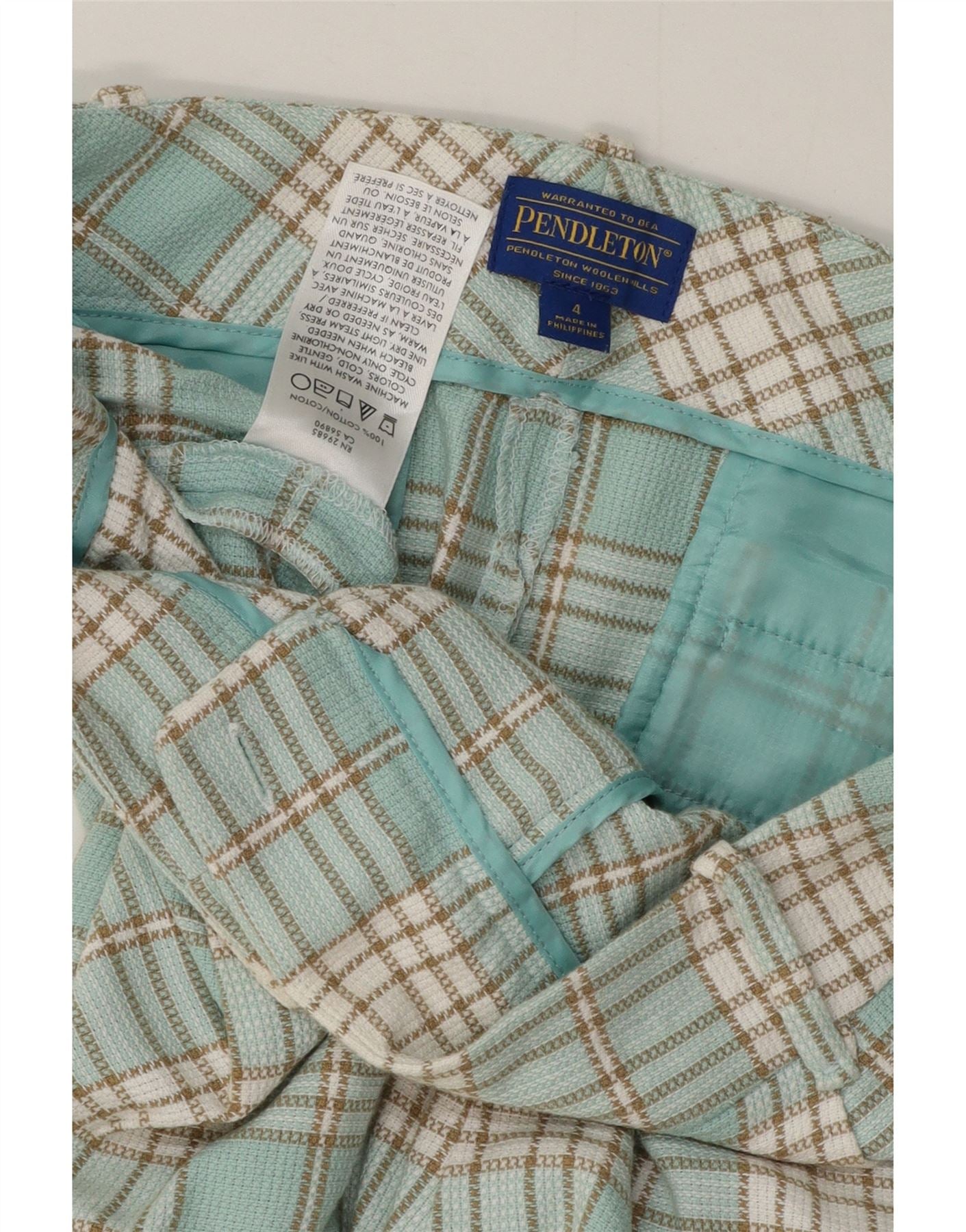 PENDLETON Womens Pegged Chino Trousers US 4 Small W30 L28 Turquoise Check
