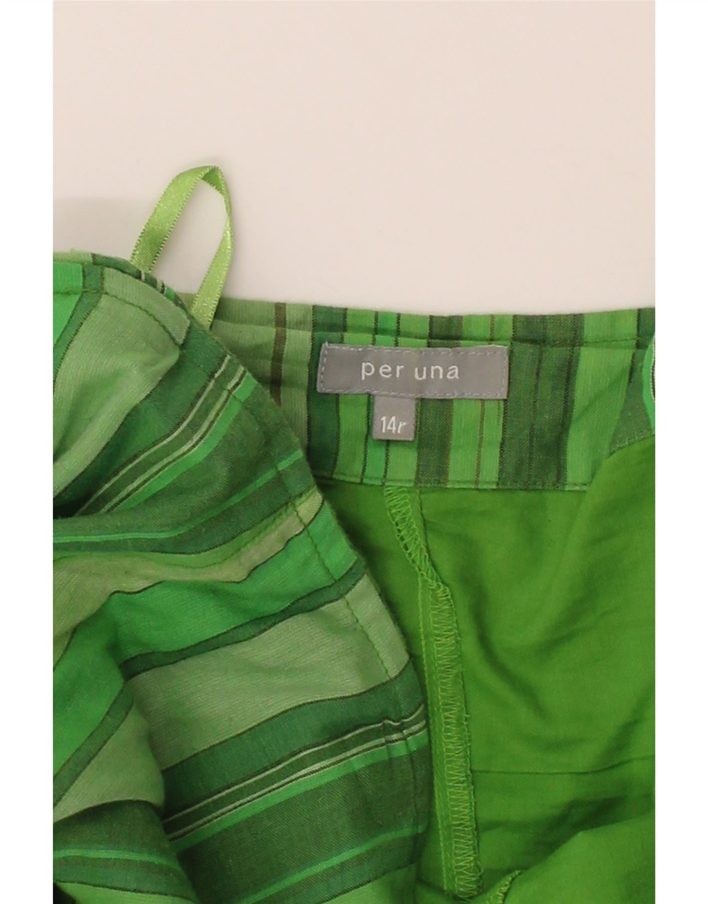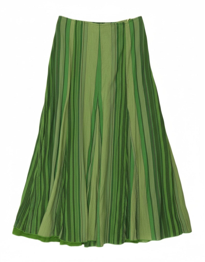 PER UNA Womens High Waist A-Line Skirt UK 14 Large W34 Green Striped