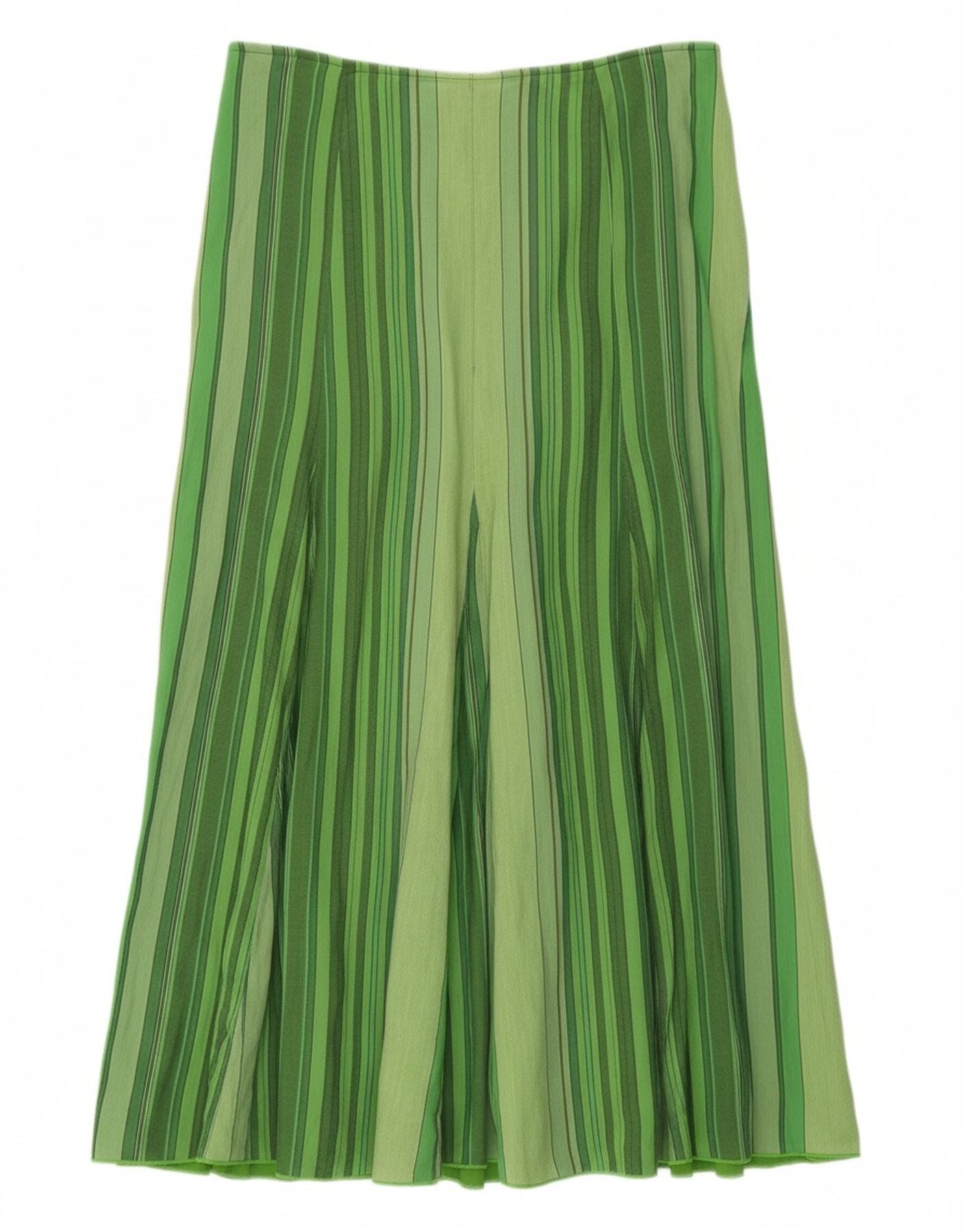 - AI Description: This Per Una womens midi skirt is crafted from a green woven fabric, offering a comfortable relaxed fit. It features an abstract striped pattern, bringing bohemian charm. The pull on closure ensures ease of wear. Its flowing, loose fit drapes elegantly, making it a versatile wardrobe addition. This skirt combines effortless style with a contemporary aesthetic for everyday wear.