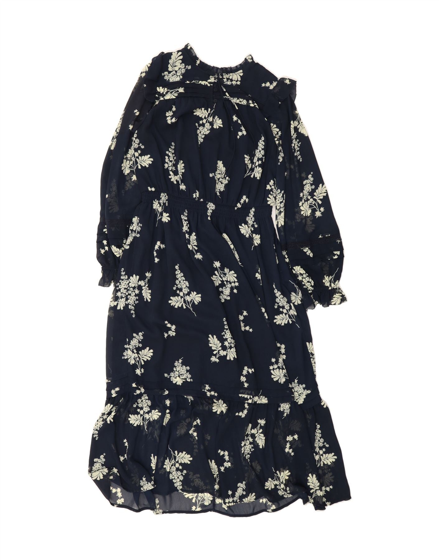 PER UNA Womens Long Sleeve Maxi Dress UK 12 Medium Navy Blue Floral