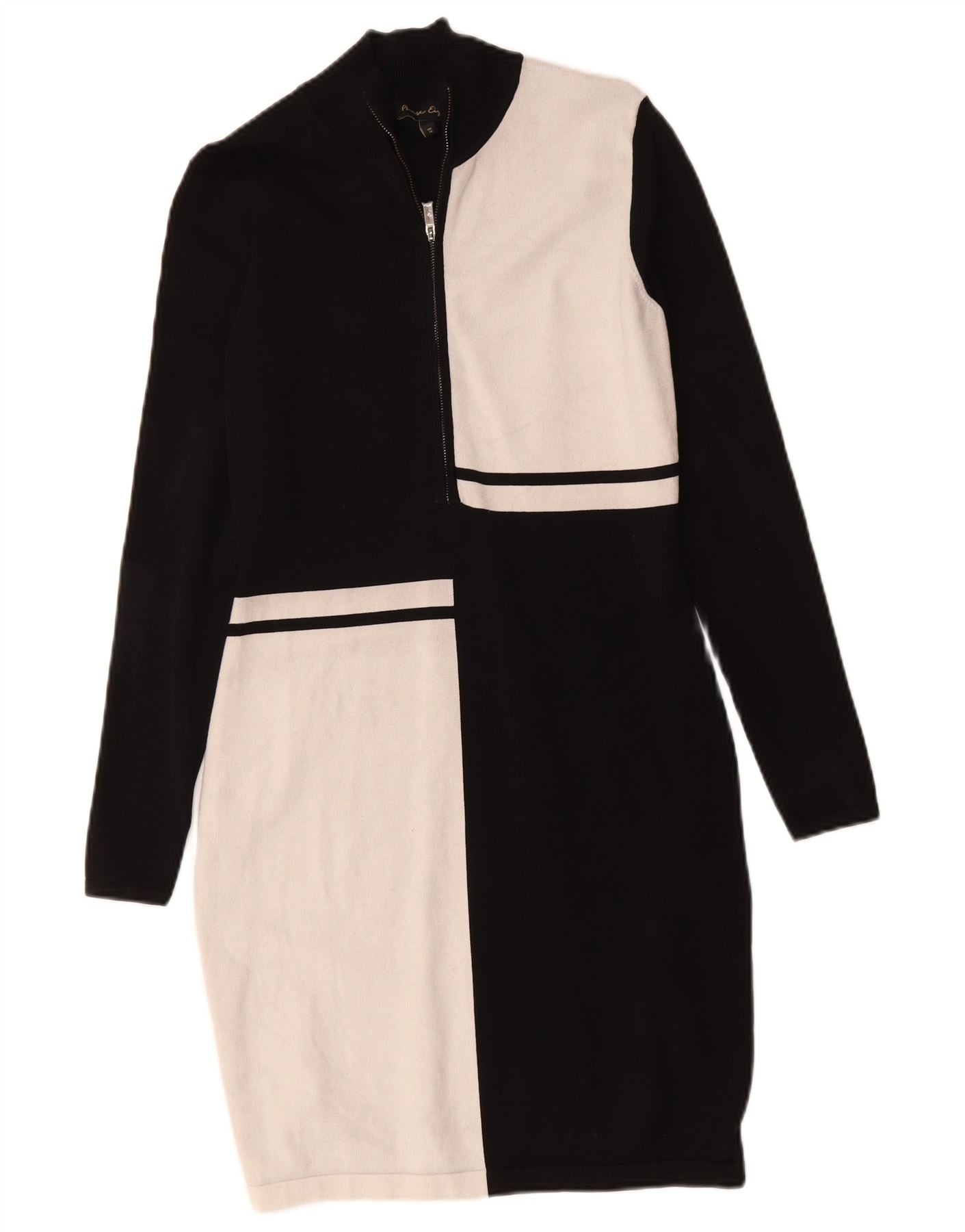 PHASE EIGHT Womens Long Sleeve Jumper Dress UK 10 Small Black Colourblock