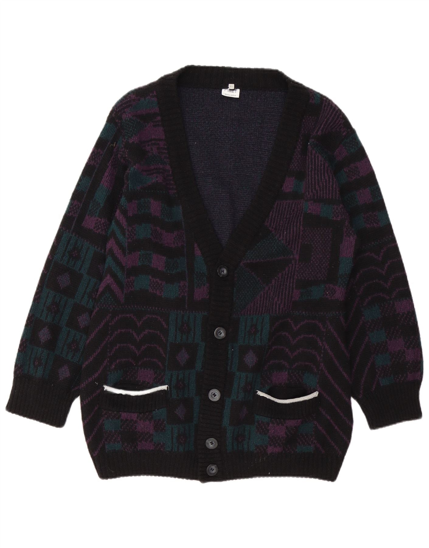 PIMET MAGLIERA Γυναικείο πουλόβερ ζακέτα UK 18 XL Μαύρο γεωμετρικό