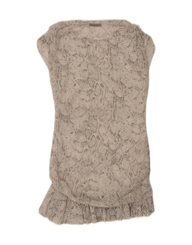 PINKO Womens Drop Waist Dress UK 10 Small Grey Animal Print Polyester