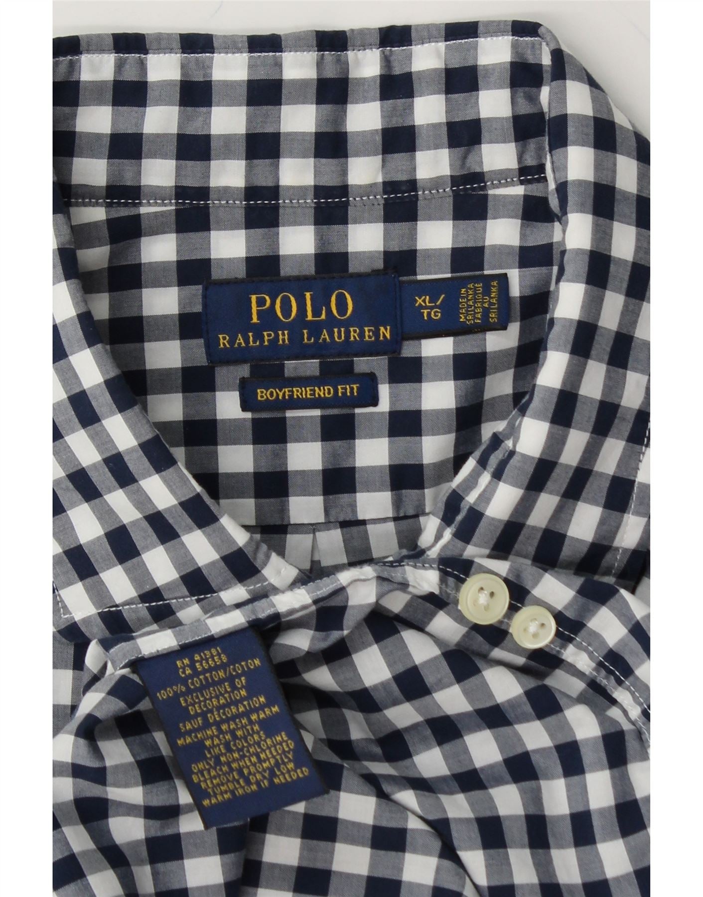 POLO RALPH LAUREN Mens Boyfriend Fit Shirt XL Navy Blue Check Cotton