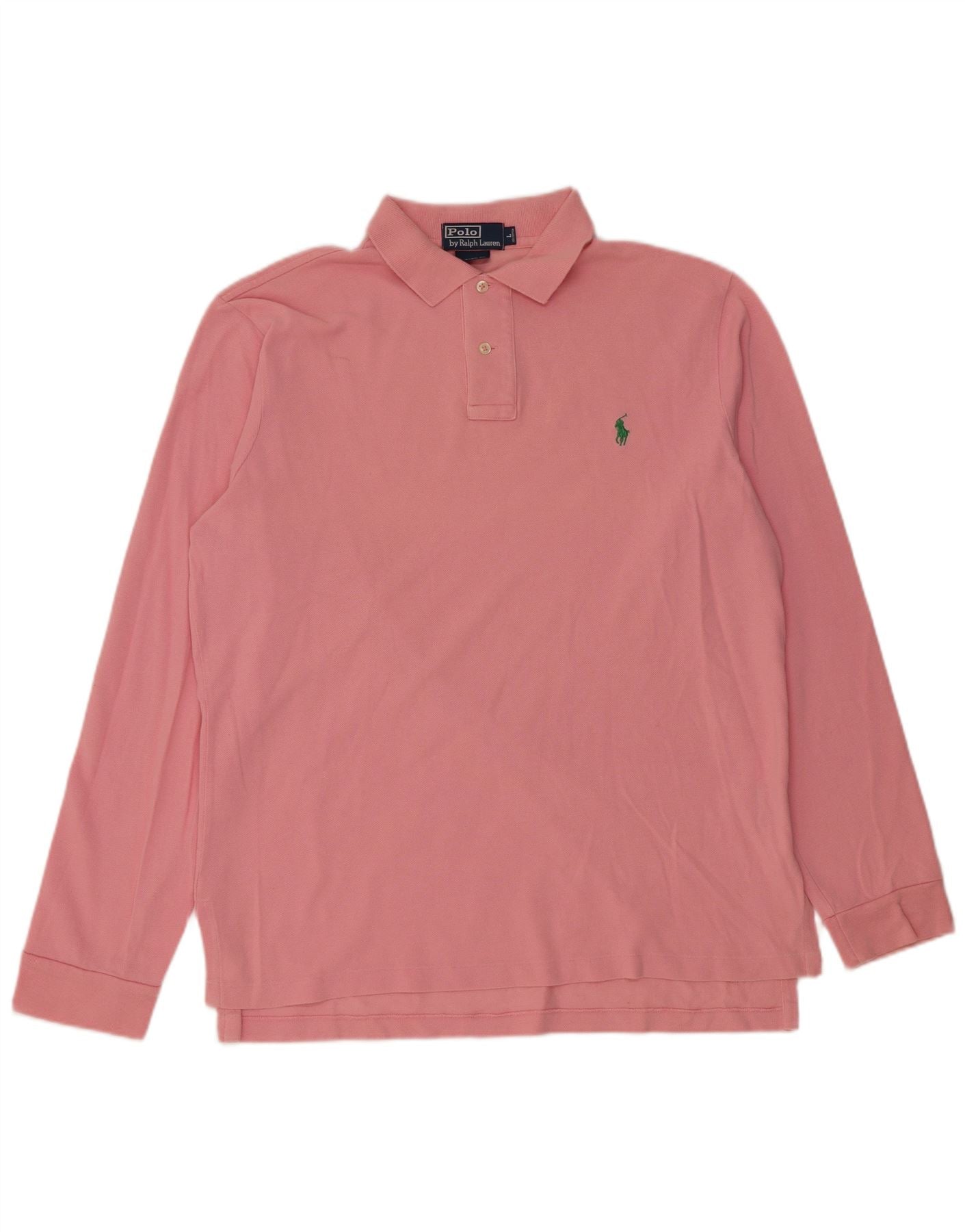 POLO RALPH LAUREN Ανδρικό μακρυμάνικο πουκάμισο πόλο με προσαρμοσμένη εφαρμογή, μεγάλο ροζ βαμβακερό