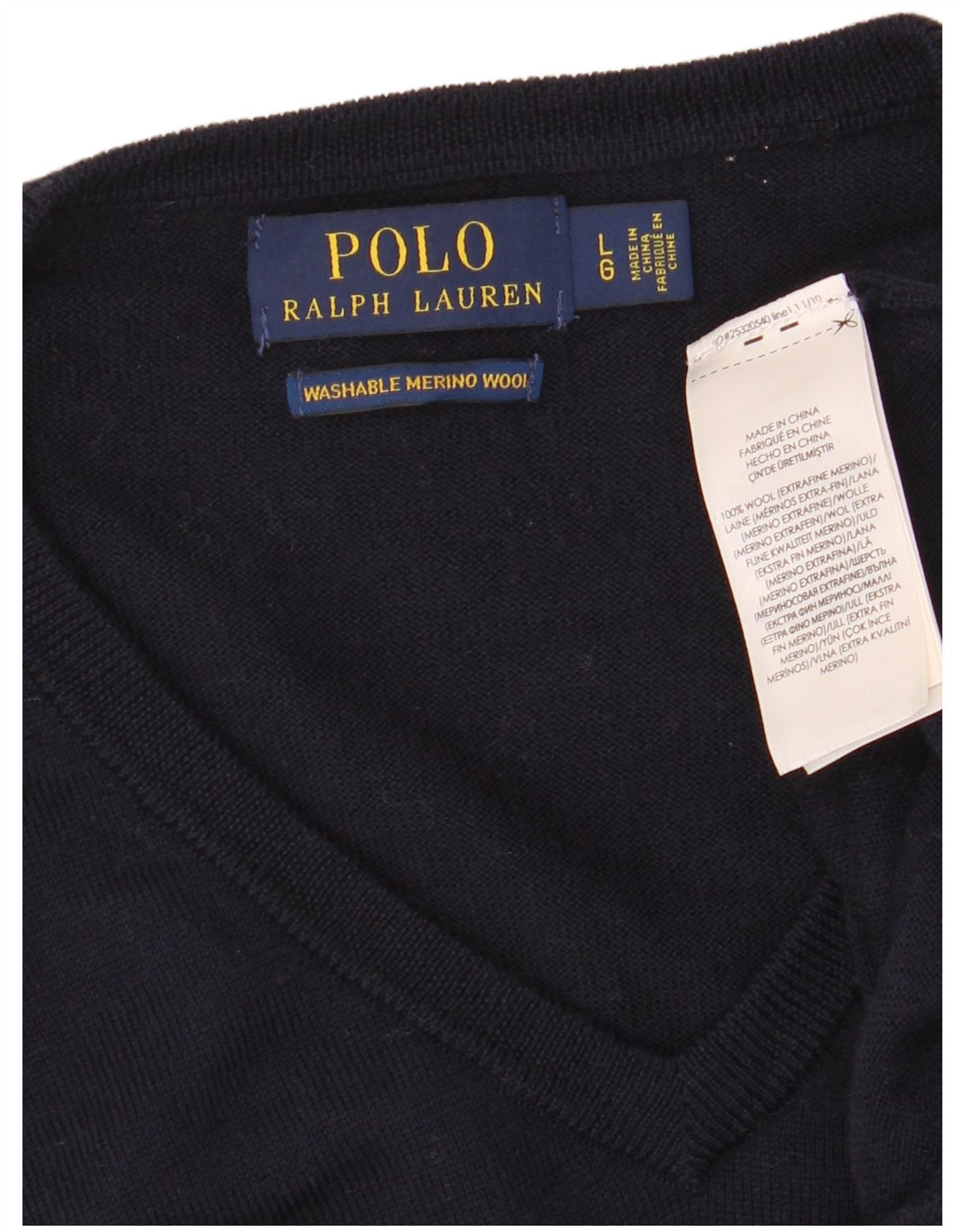 Polo Ralph Lauren Ανδρικό πουλόβερ με λαιμόκοψη με λαιμόκοψη σε μεγάλο μέγεθος μπλε ναυτικό μαλλί Merino