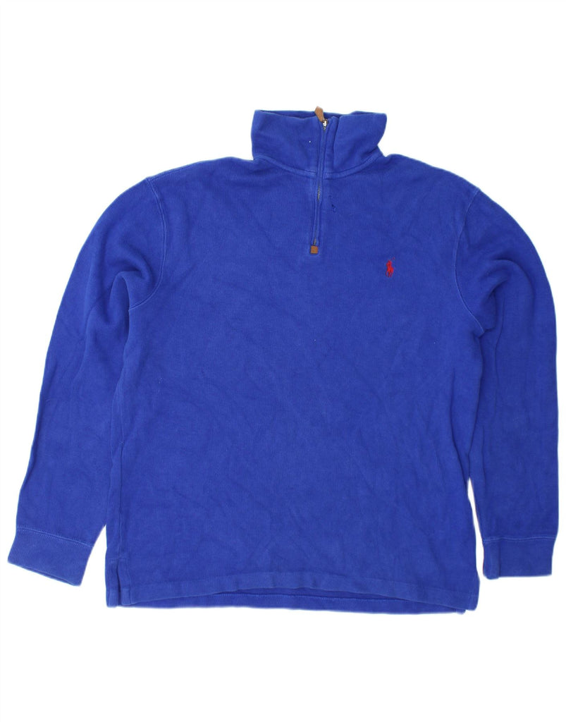 POLO RALPH LAUREN Mens Zip Neck Jumper Sweater Medium Blue Cotton