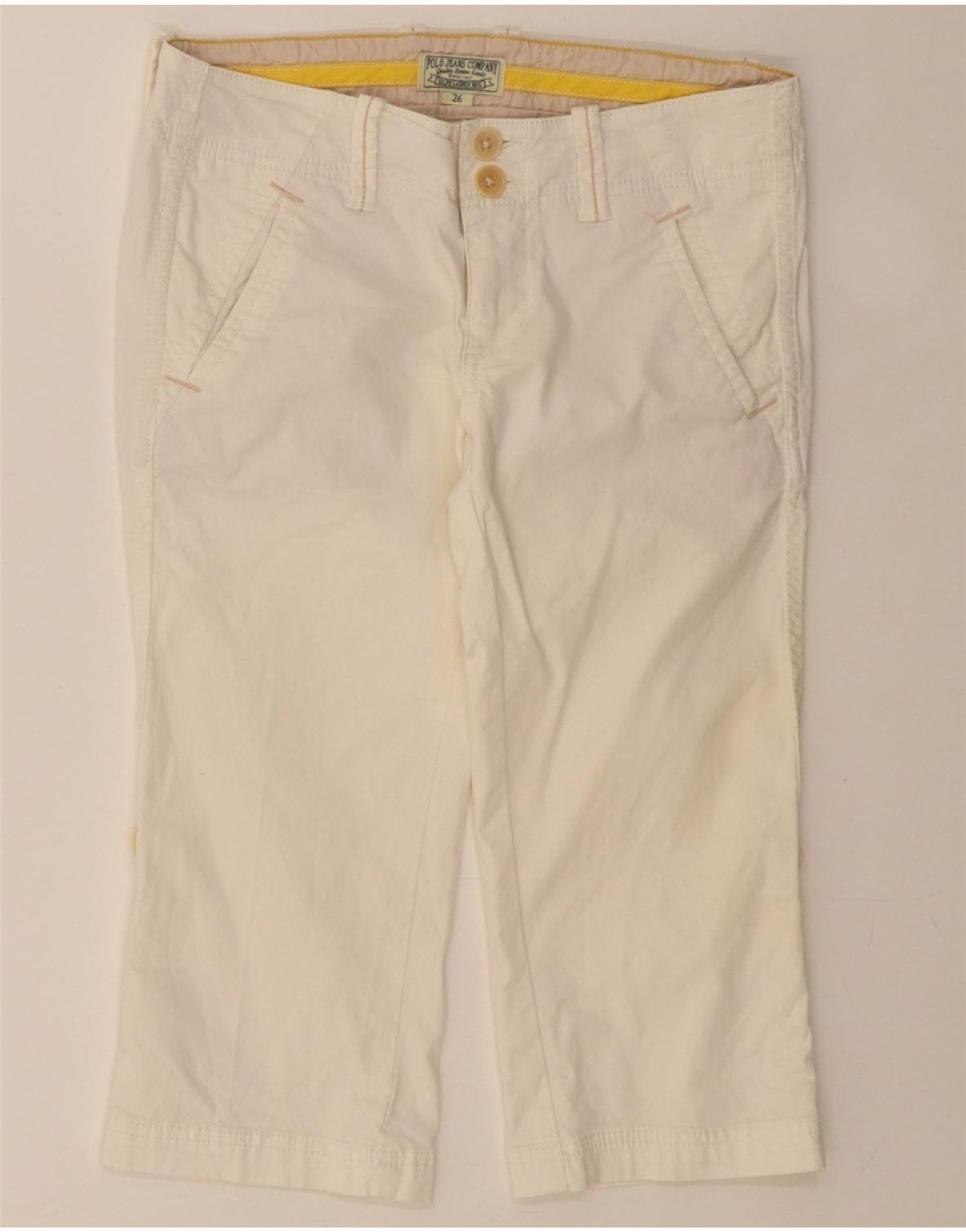 POLO RALPH LAUREN Womens Straight Capri Trousers W26 L16 White Cotton
