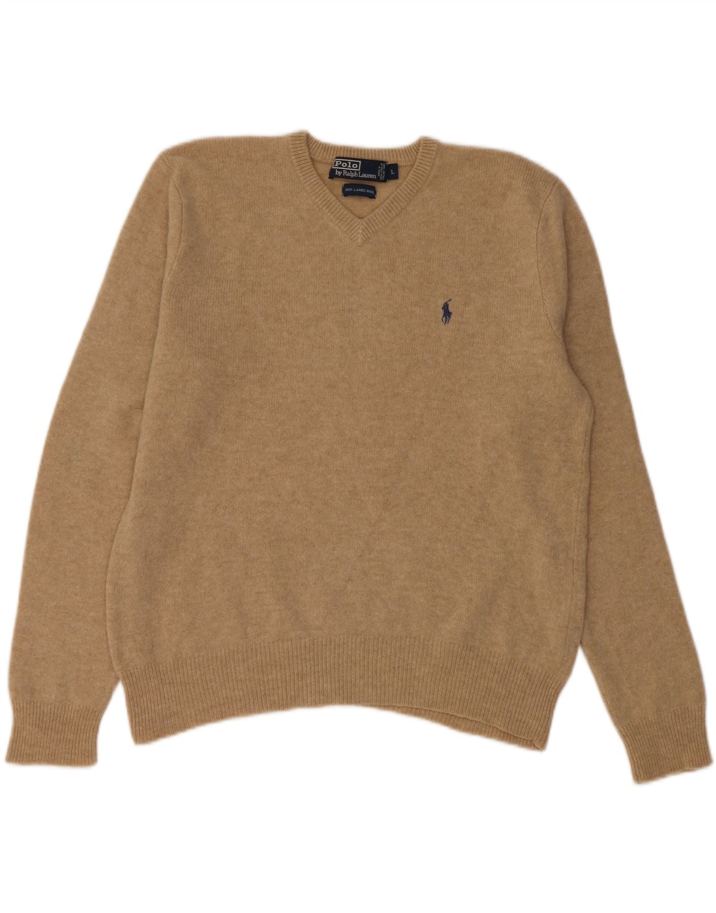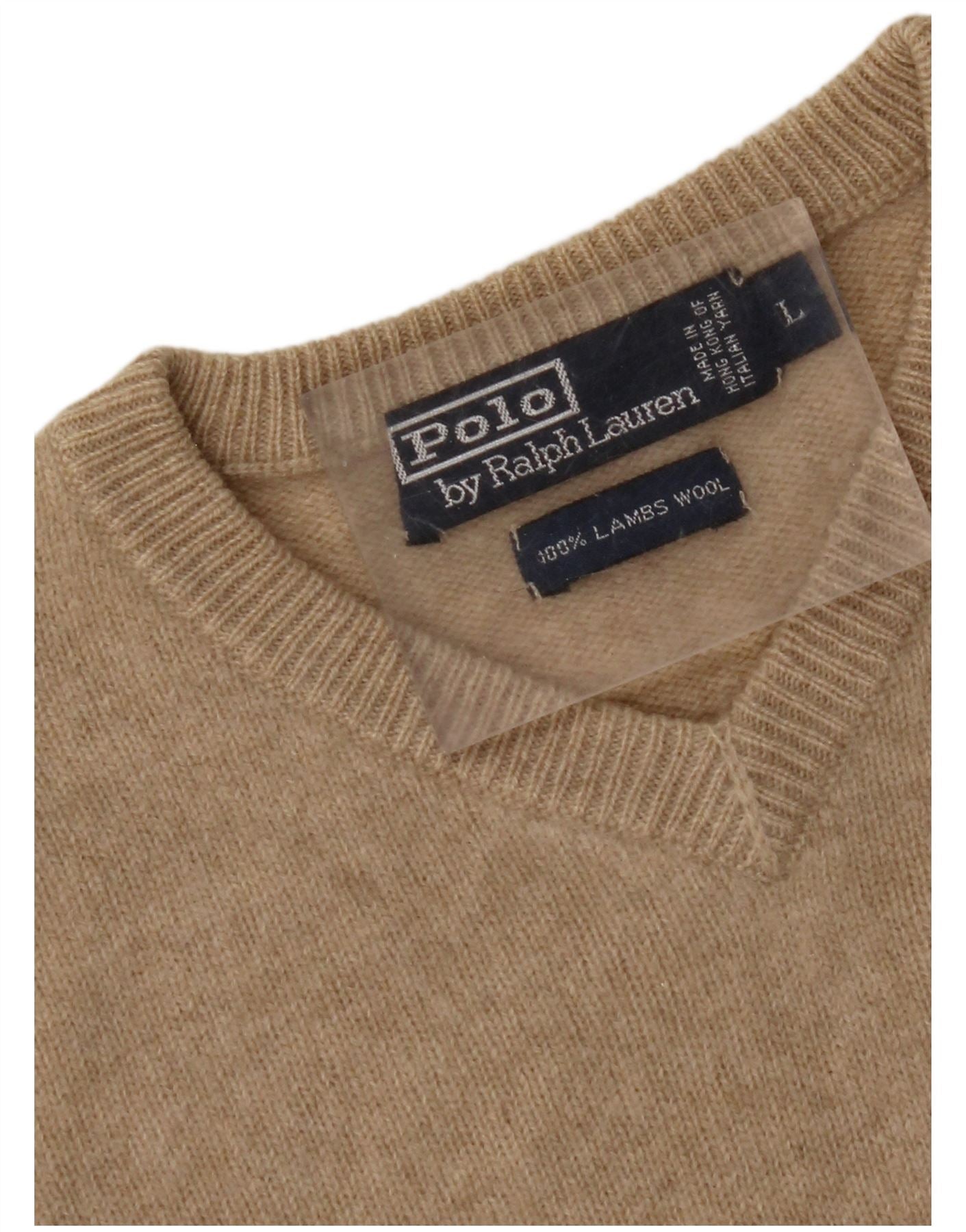 POLO RALPH LAUREN Γυναικείο πουλόβερ με λαιμόκοψη με V λαιμόκοψη UK 16 Μεγάλο μπεζ μαλλί αρνιού