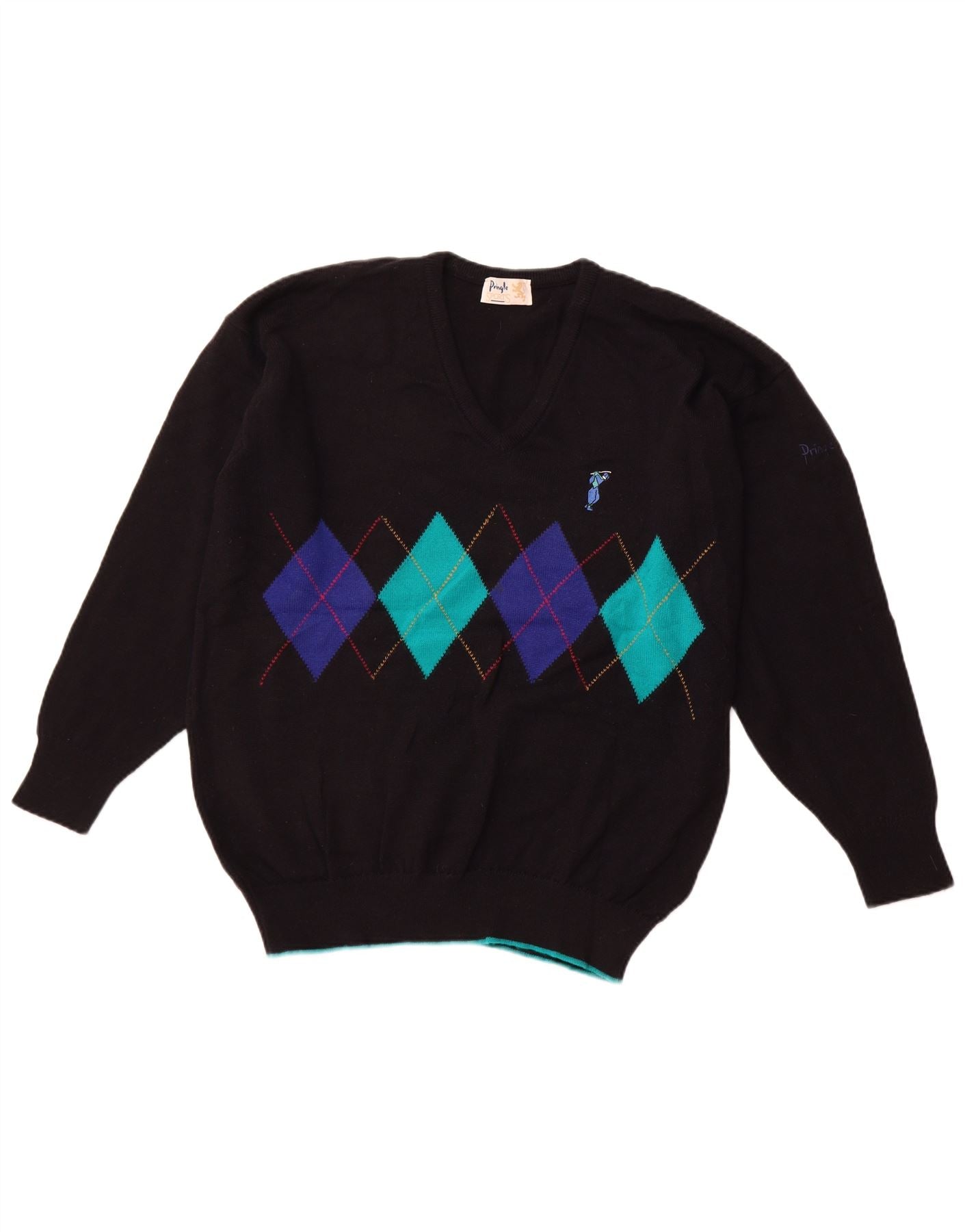 Ανδρικό πουλόβερ PRINGLE με V λαιμόκοψη XL Μαύρο Argyle/Ακρυλικό Διαμάντι