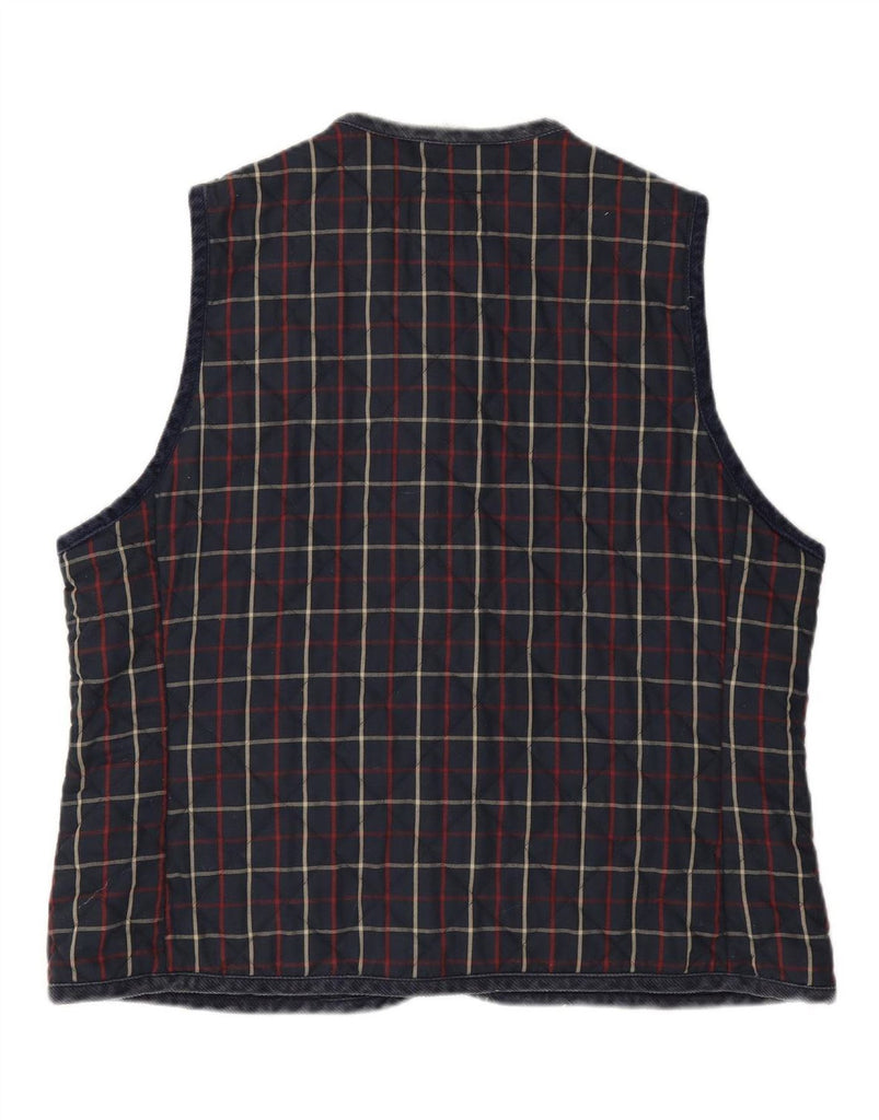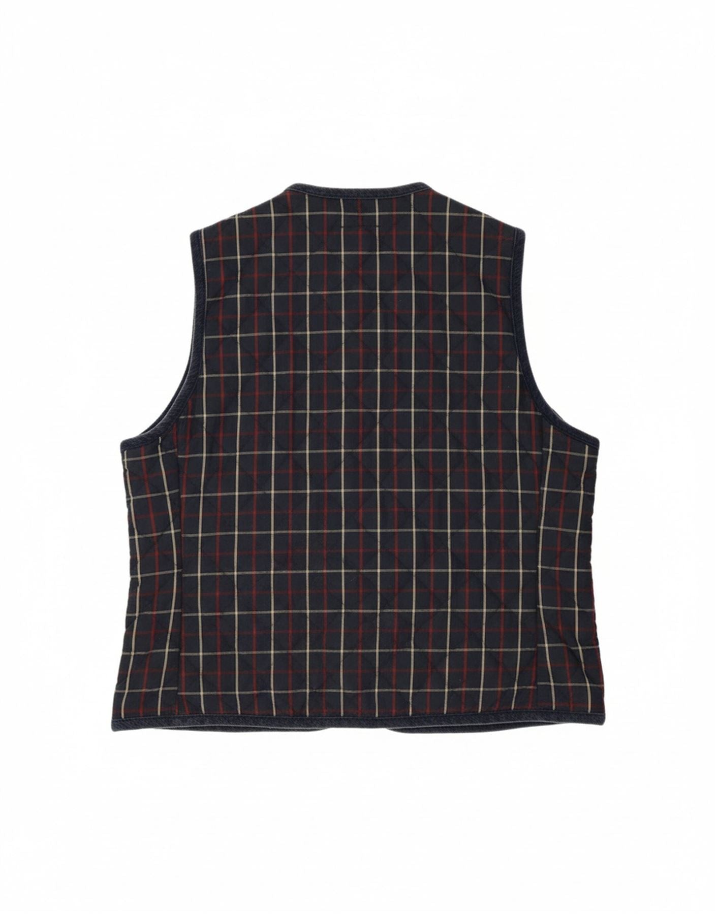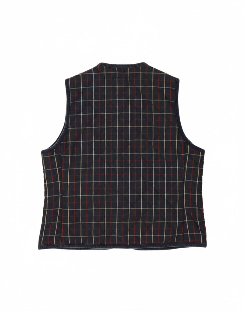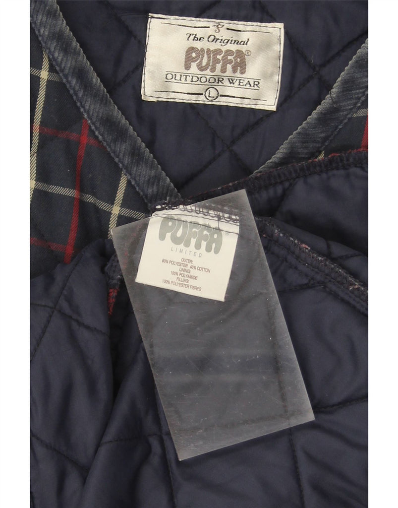 - AI Description: This Puffa womens waistcoat is presented in a deep navy blue blended fabric, featuring a distinguished plaid pattern. Its classic collared, sleeveless design offers a traditional silhouette. A five button front closure secures the regular fit, ensuring comfort. The waistcoat boasts a full lining and includes practical pockets for convenience. An adjustable waist allows for a tailored shape, completing this versatile and timeless piece. A subtle brand logo adds a refined touch.